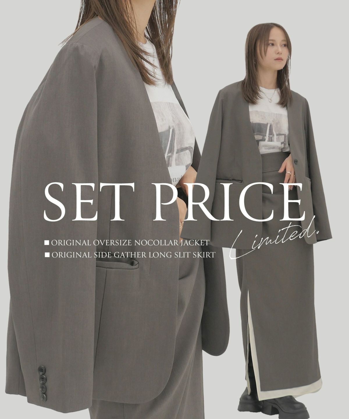 他の画像を見る 【LIMITED PRICE】 【SET価格】original oversize nocollar jacket+original side gather long slit skirt ORIGINAL 定価 ¥ 27,500 のところ ¥ 24,200 税込 販売期間 2025/09/30 12:00 〜 詳細を見る お気に入りに登録する