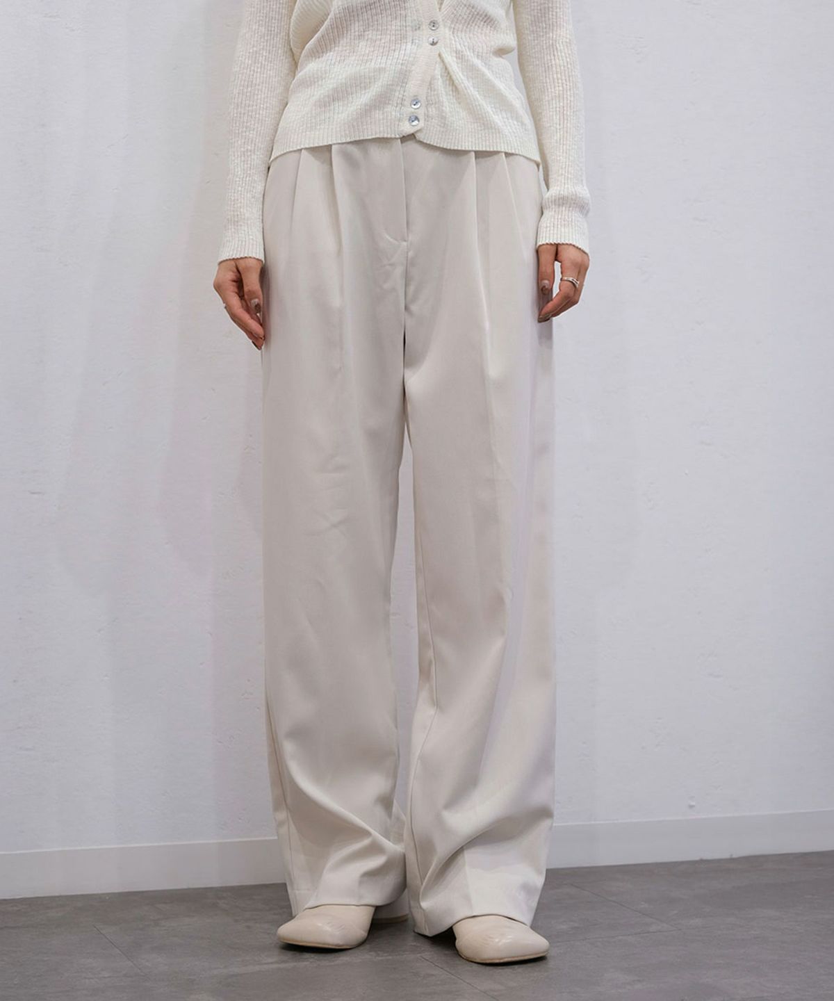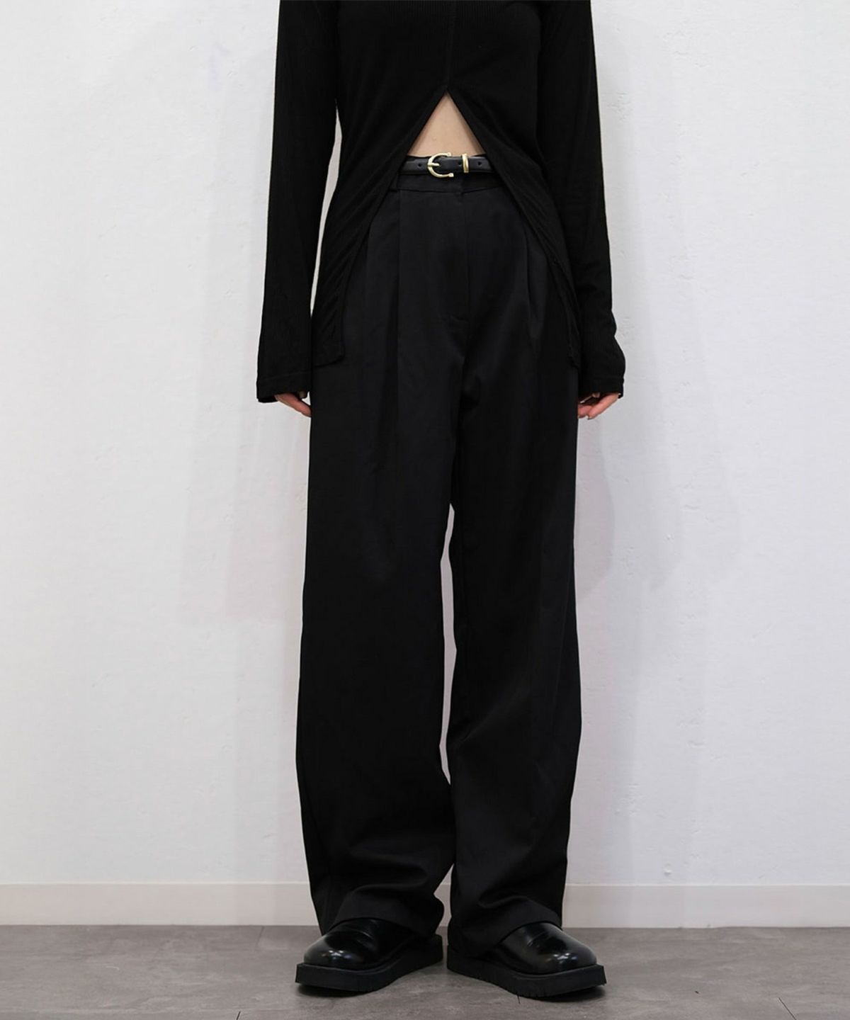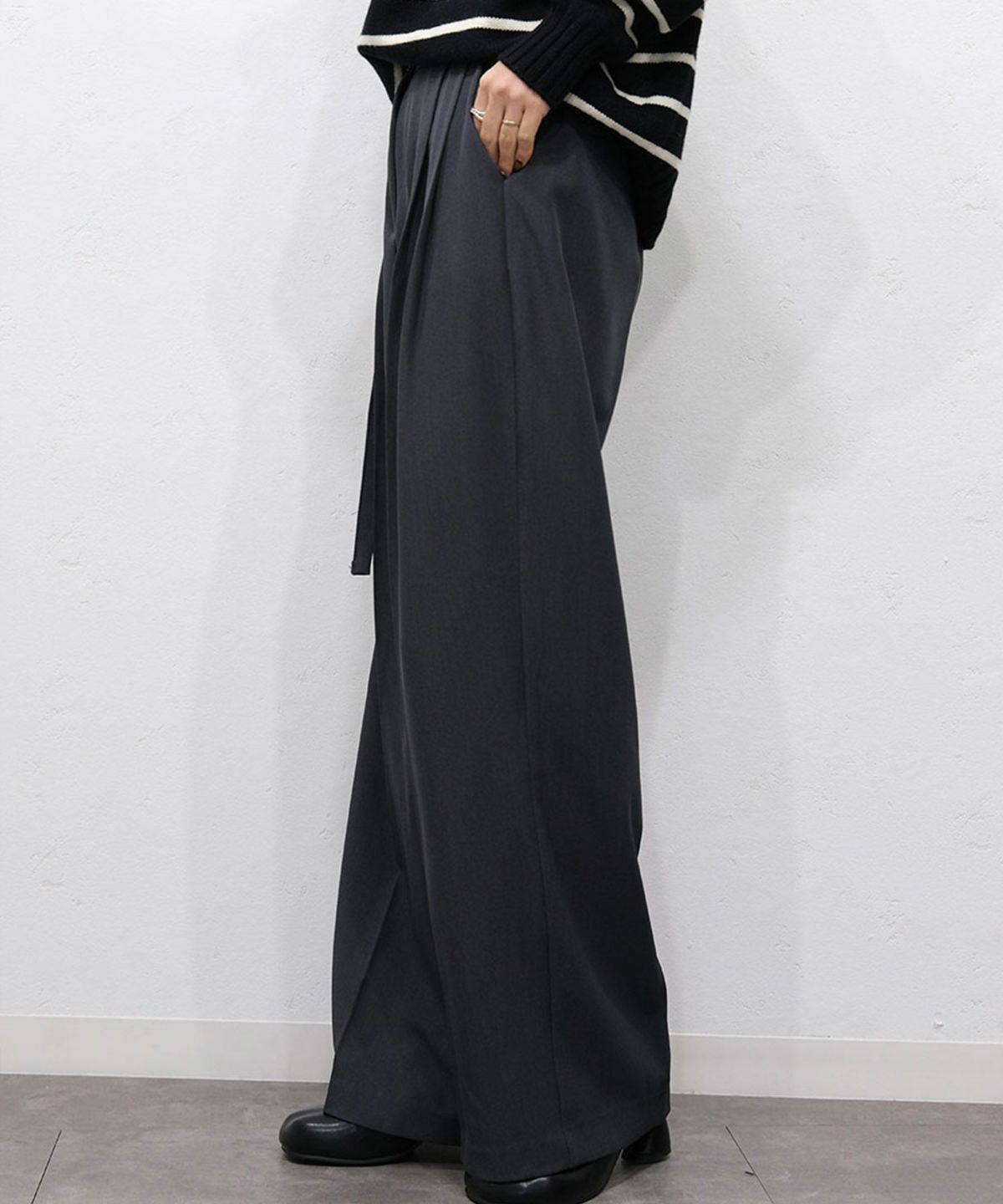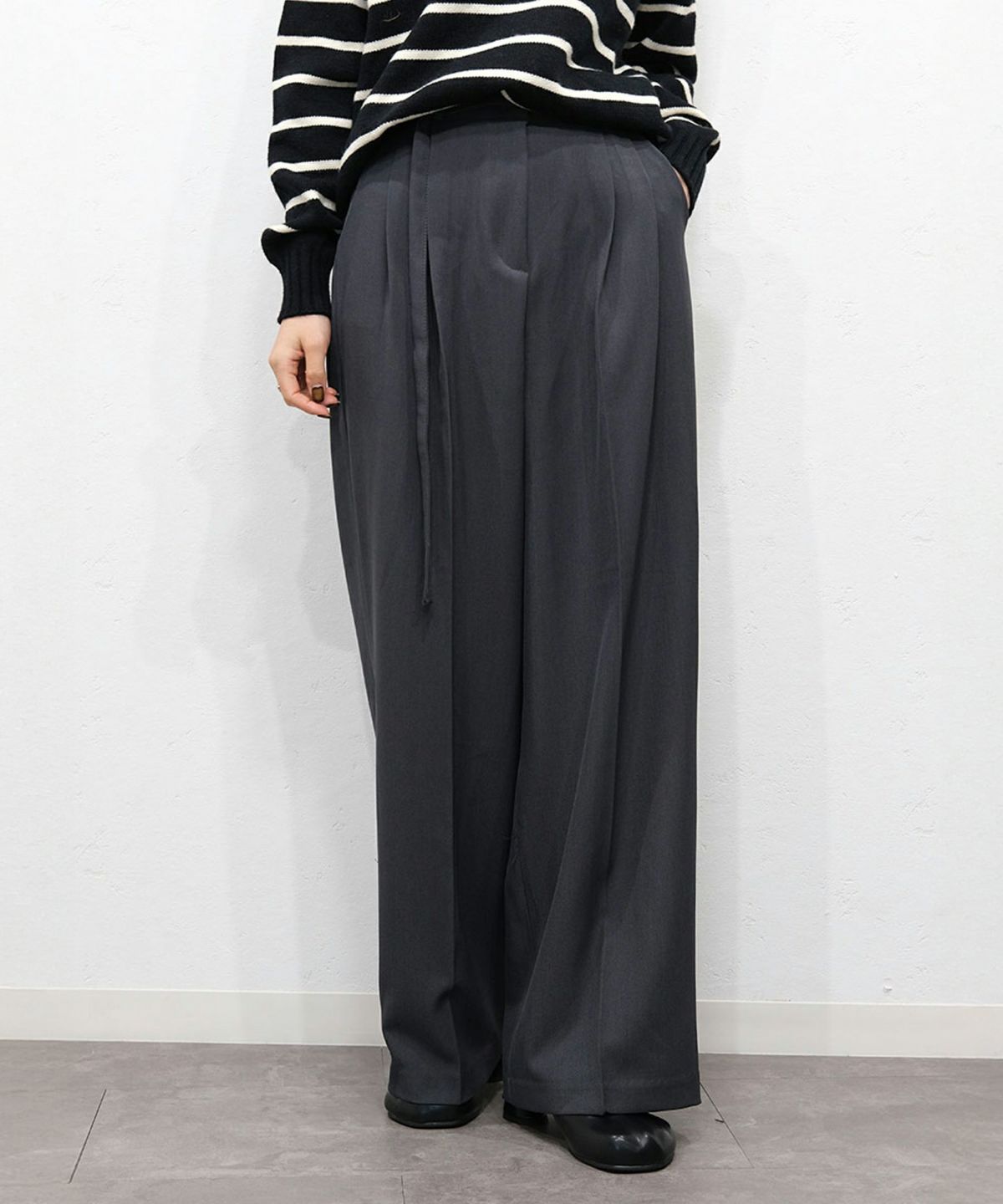 他の画像を見る double tuck wide slacks 定価 ¥ 12,100 のところ ¥ 9,900 税込 販売期間 2025/12/03 12:00 〜 カートに入れる お気に入りに登録する