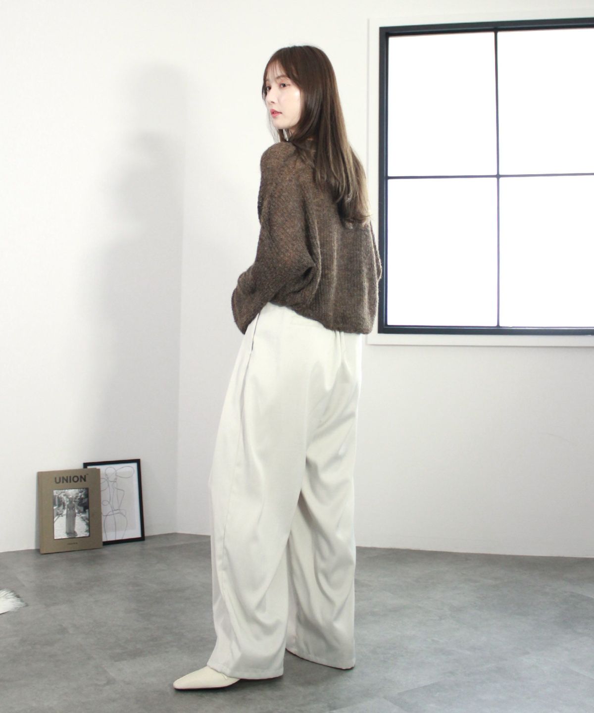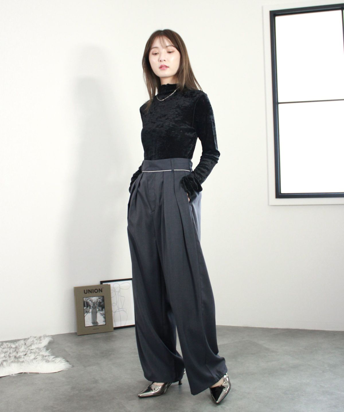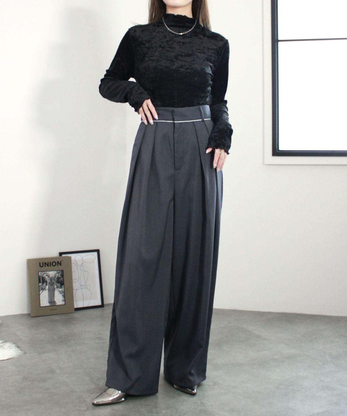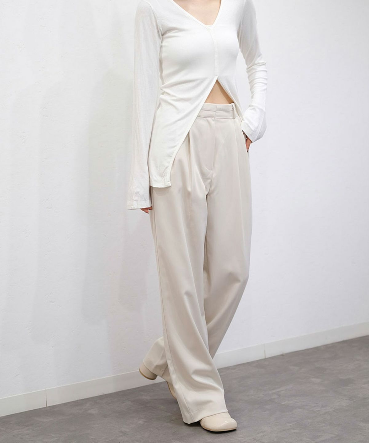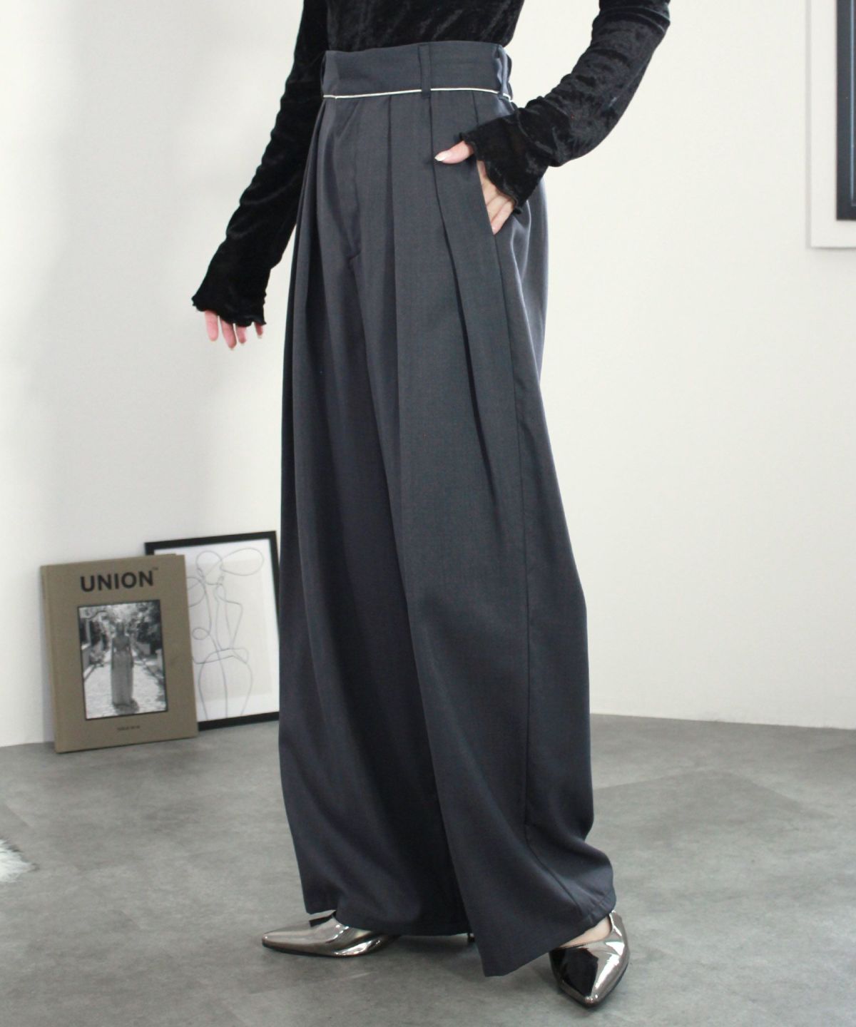 他の画像を見る double tuck wide slacks 定価 ¥ 12,100 のところ ¥ 9,900 税込 販売期間 2025/12/03 12:00 〜 カートに入れる お気に入りに登録する