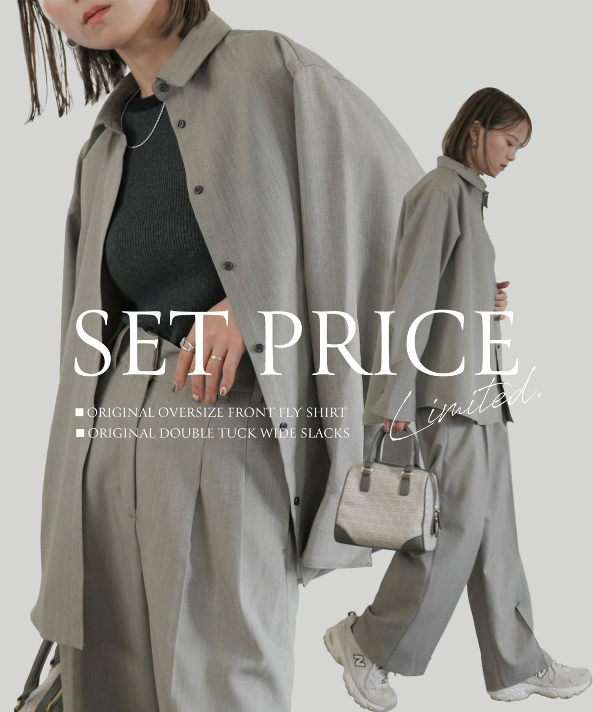 他の画像を見る 【SET PRICE】 【SET価格】original oversize front fly shirt + original double tuck wide slacks ORIGINAL 定価 ¥ 19,250 のところ ¥ 15,950 税込 販売期間 2025/12/03 12:00 〜 在庫切れ 詳細を見る お気に入りに登録する