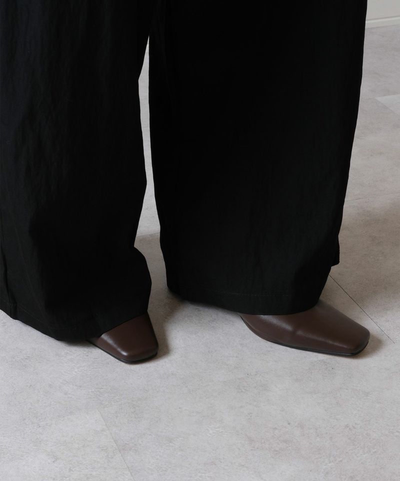 シャープなラインが際立つスクエアトゥデザインのミュール。