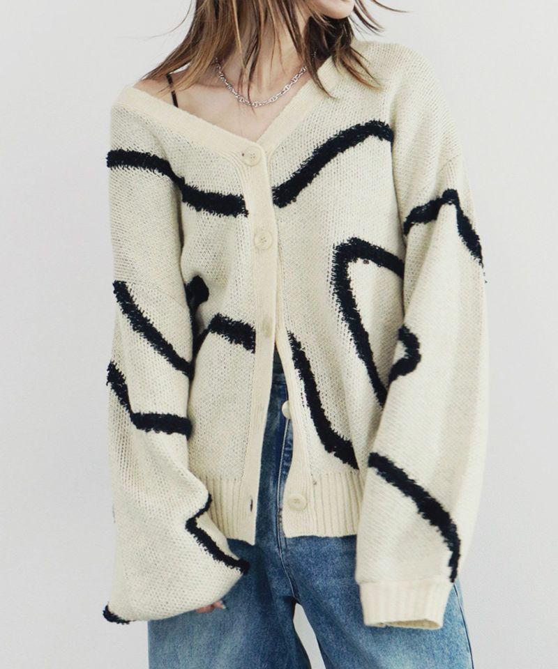 1枚で目を惹くニュアンスデザインがかわいいオーバーカーディガン。