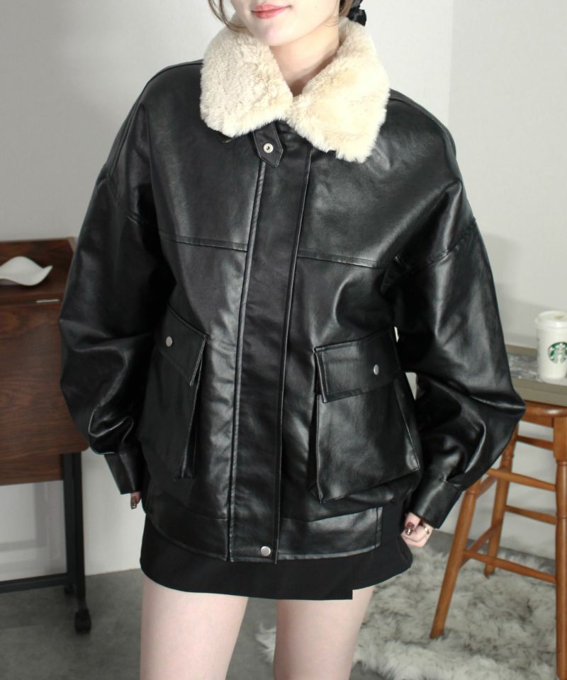 存在感のあるオーバーサイズシルエットが魅力のレザージャケット。