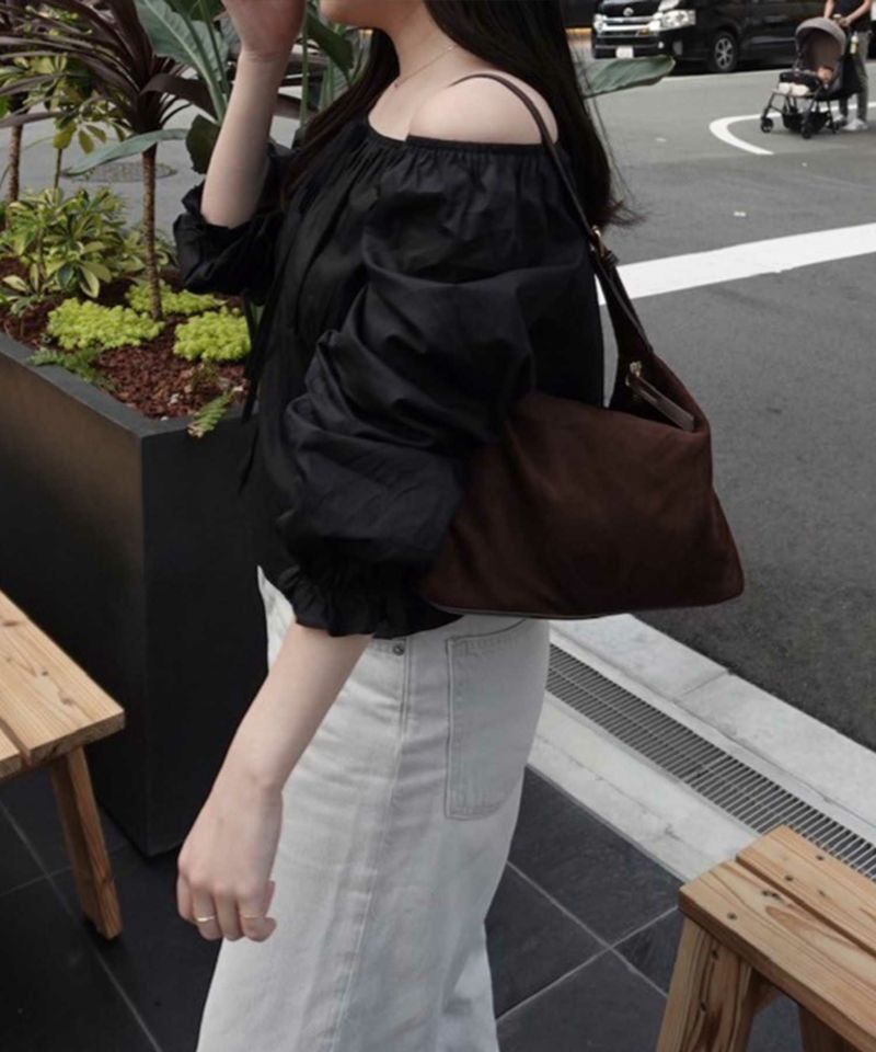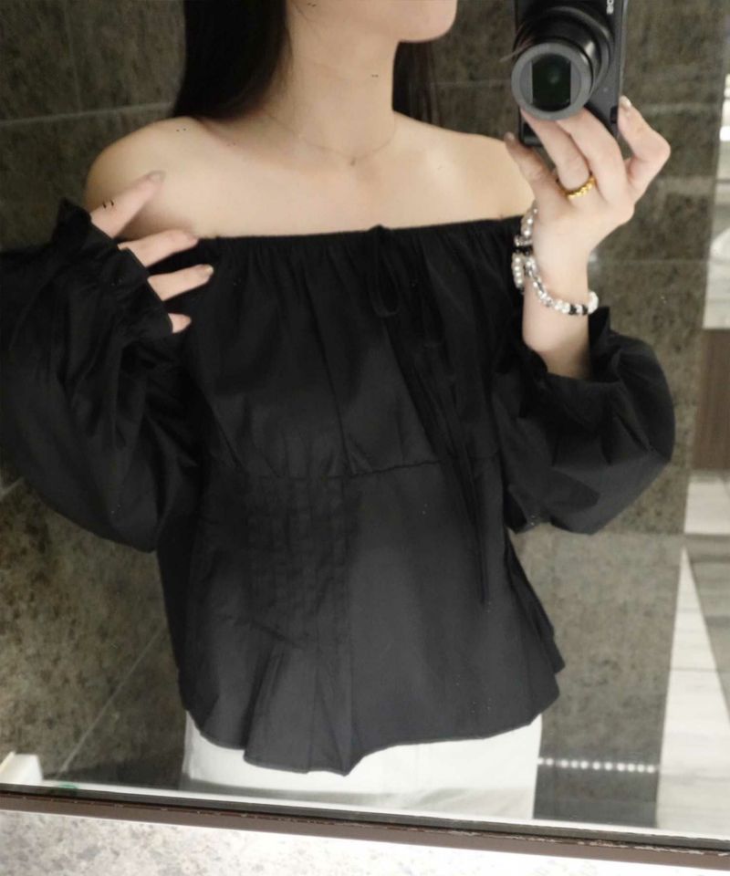 ブラウス素材なのでロングシーズン使える嬉しいアイテム◎オフショルデザインなのもレディライクでかわいい!