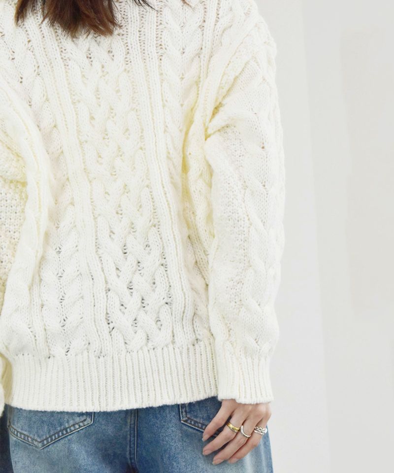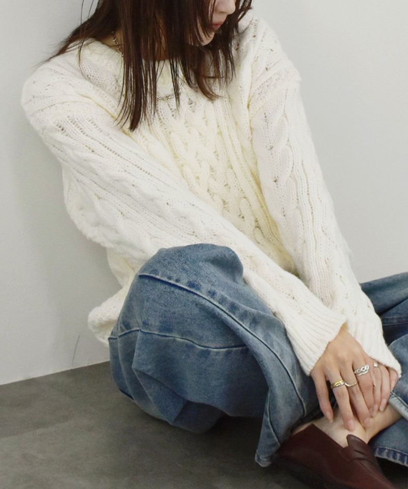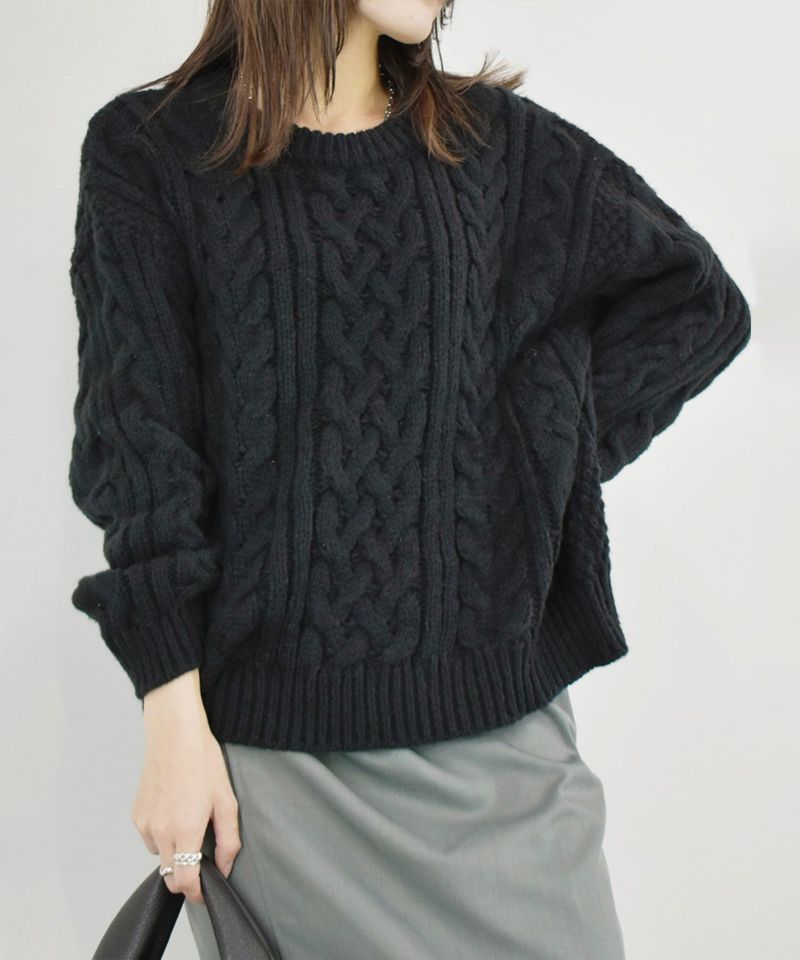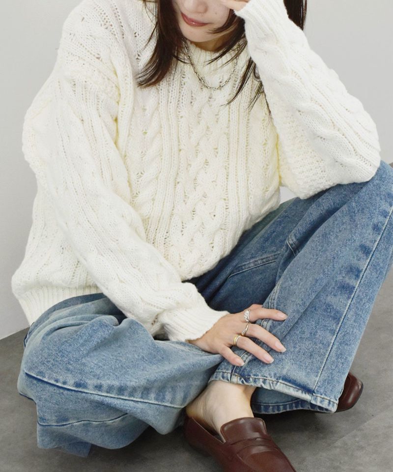 秋冬のコーデに欠かせない定番のケーブルニット。