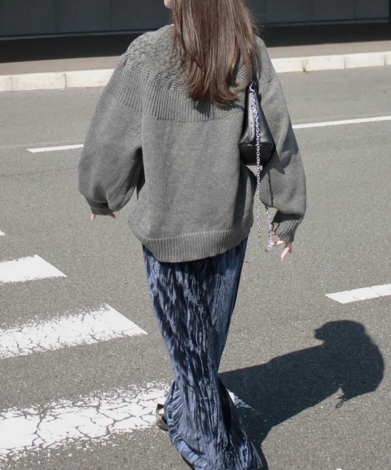 立体感のある編み柄がシンプルな中にも華やかさをプラスし、1枚で着映えするデザインです。