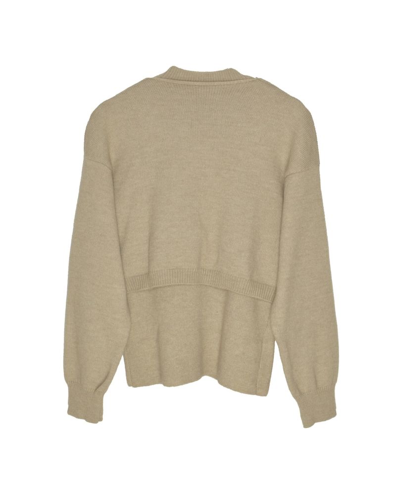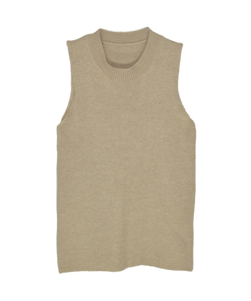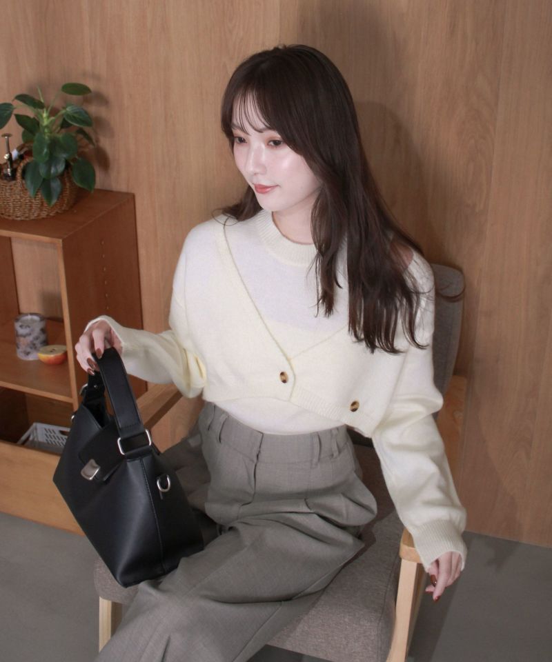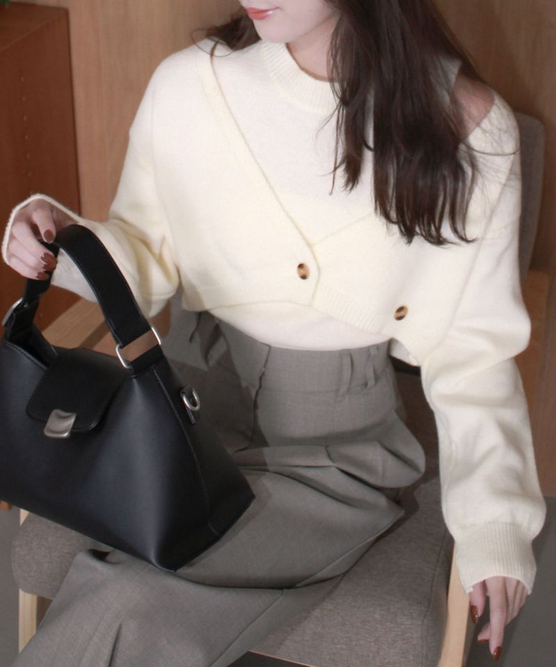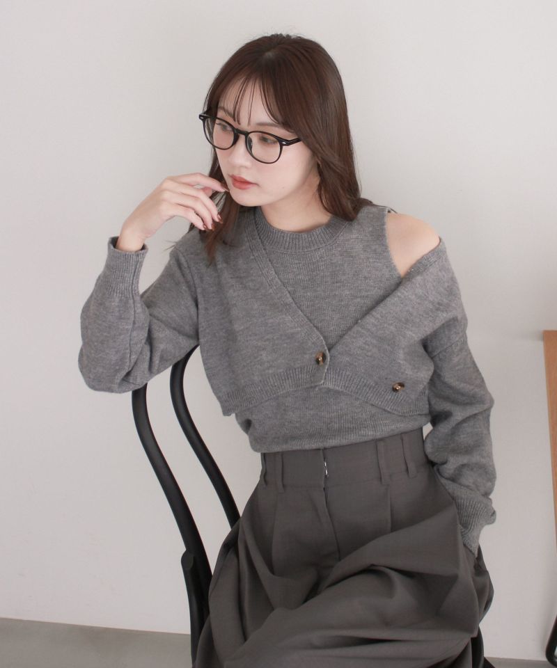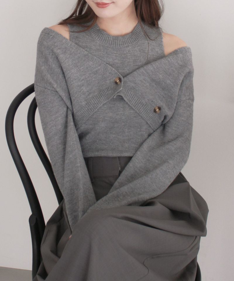 ノースリーブニットとショート丈カーディガンがセットになったレイヤードデザイン。