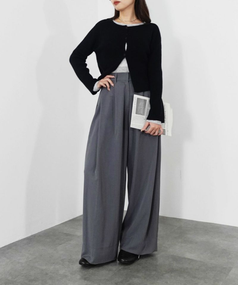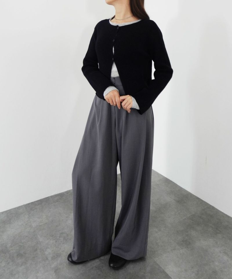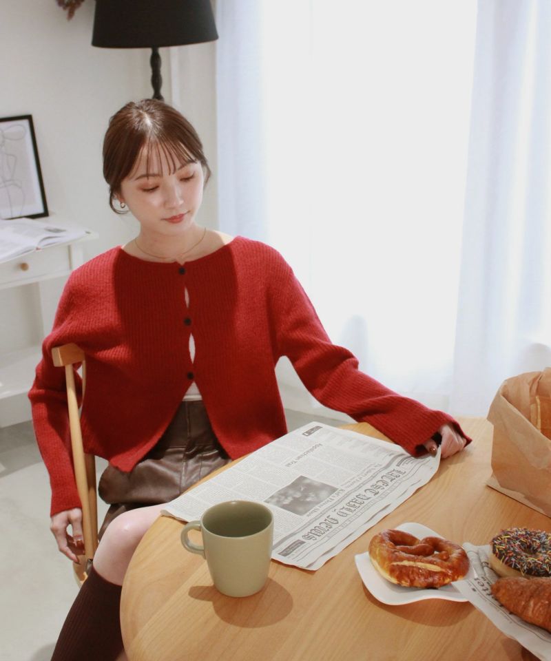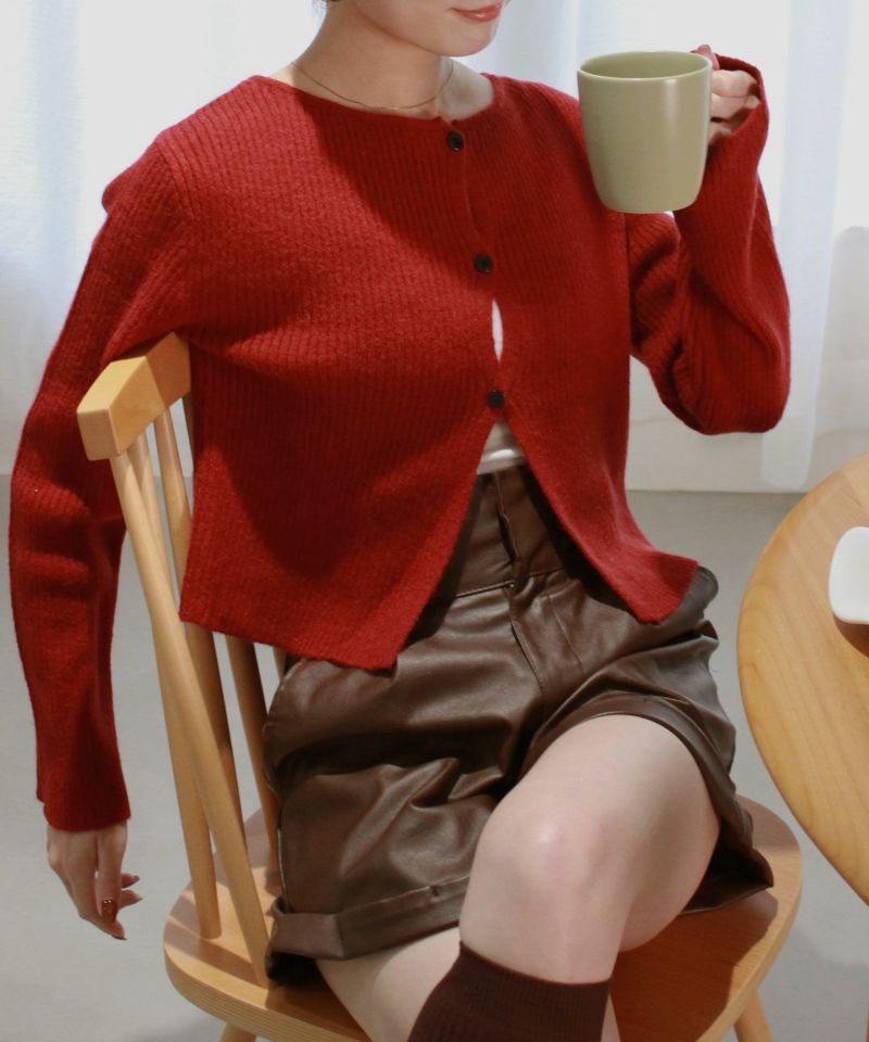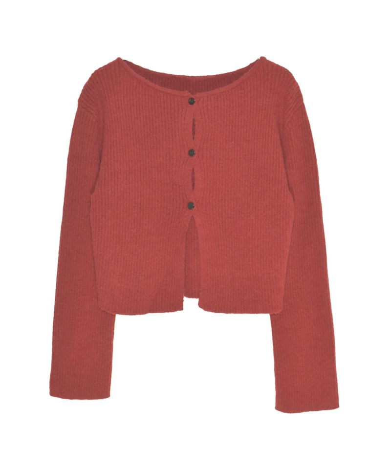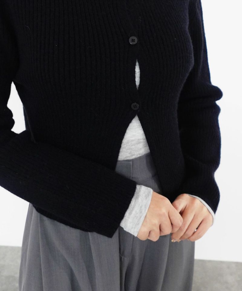 コンパクトなシルエットとショート丈で、トレンド感たっぷりに仕上げたリブカーディガン。 ボートネック風の開きがデコルテをきれいに見せ、女性らしい抜け感を演出します。 シンプルながらも計算された丈感で、スタイルアップ効果も抜群の一枚です