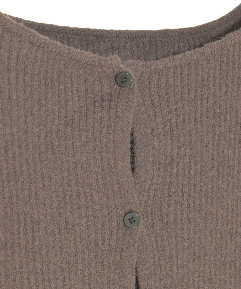 ふんわりとした柔らかさと程よい伸縮性を兼ね備えたリブニット素材を使用。 軽やかで肌あたりがよく、長時間の着用も快適。 季節の変わり目にも活躍する、あたたかみのある風合いが魅力です。