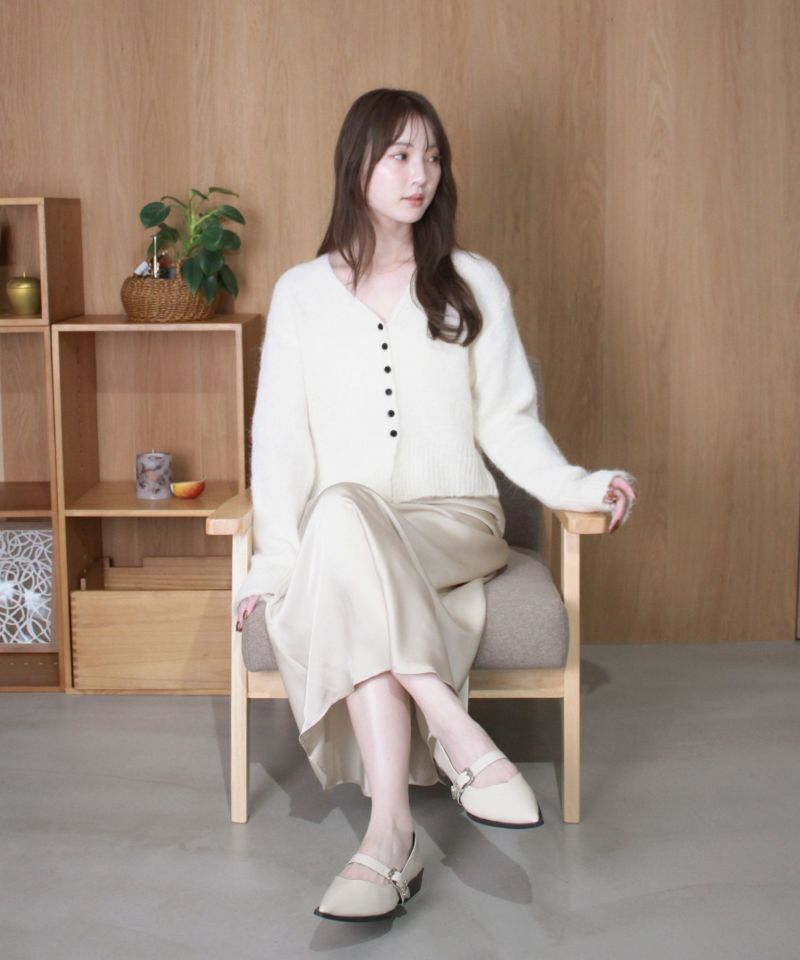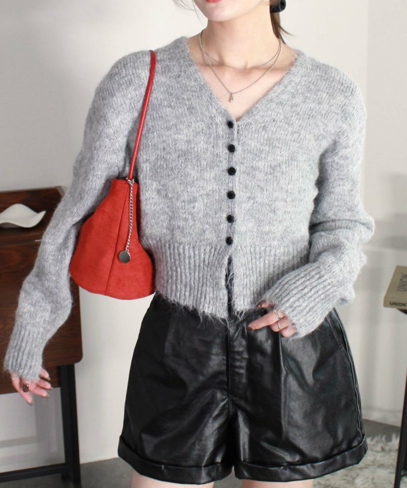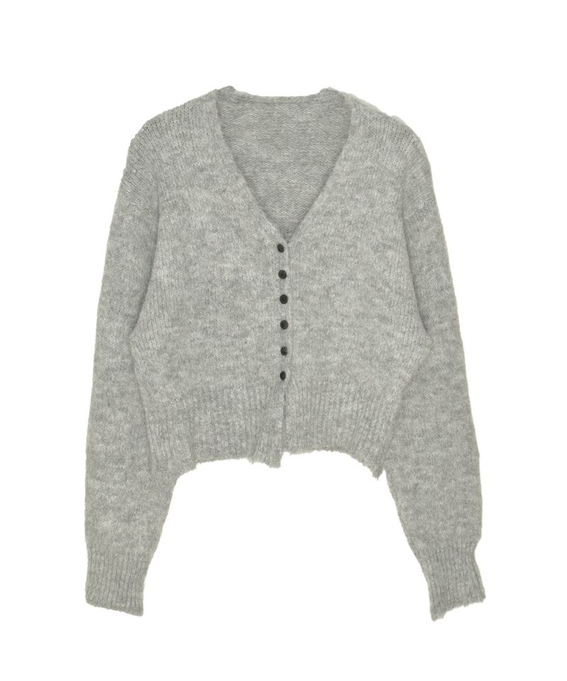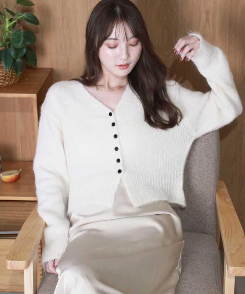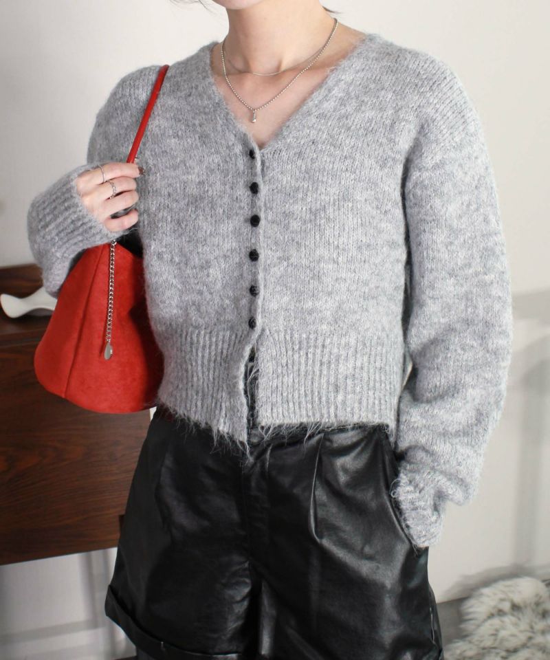 ふんわりとしたシルエットと深めのVネックが女性らしい印象のショートカーディガン。 コンパクトな丈感で、自然とスタイルアップが叶います。 フロントに並んだ小さめのボタンが上品なアクセントに。 シンプルながらも着るだけで抜け感のある着こなしを演出してくれます。