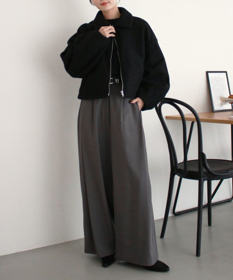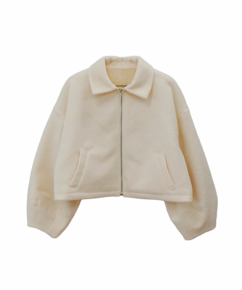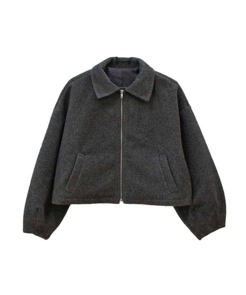 シンプルで使いやすいカジュアルさと、 トレンドライクなクロップド丈デザインが魅力的な1枚。 軽やかで柔らかい生地と、たぽんとしたボリューム袖が シンプルで着まわしやすい万能アウター。