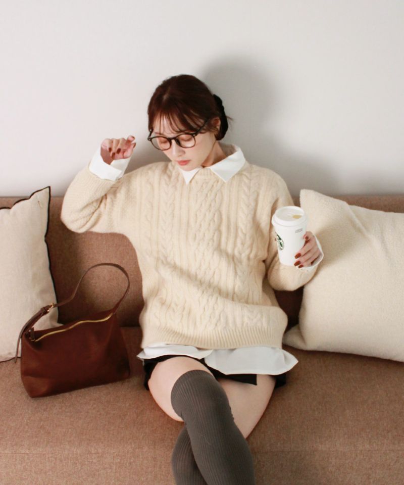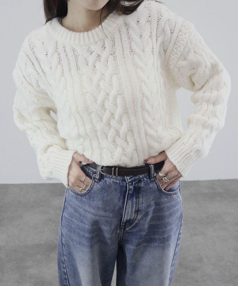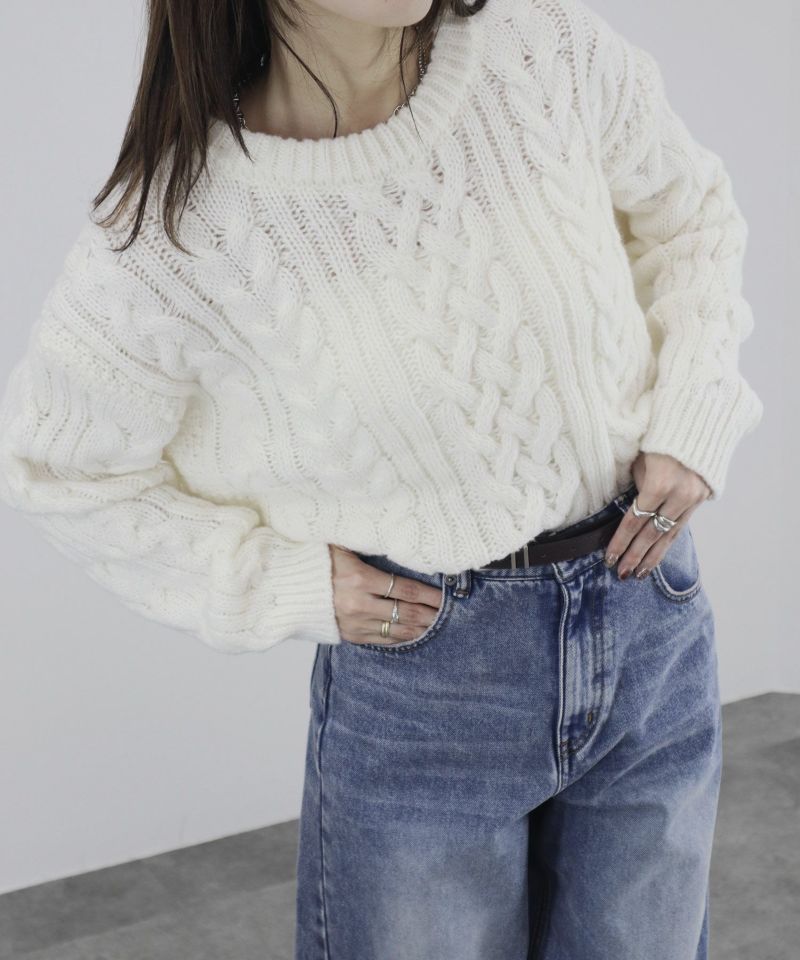 秋冬のコーデに欠かせない定番のケーブルニット。