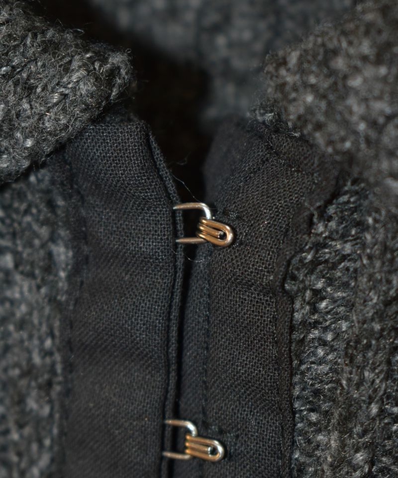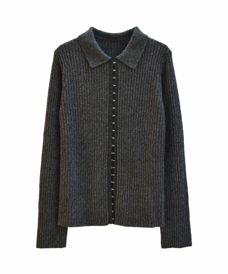 ホックはスタイリングに合わせて、開ける箇所を調整して着るのがおすすめ。