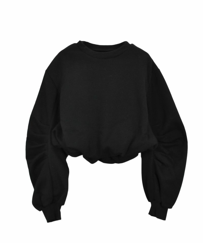 丸みのあるシルエットが魅力のショート丈スウェット。