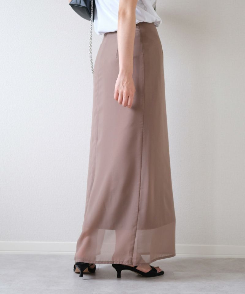 やわらかなシフォン素材とハリ感のある生地がレイヤードされたスカート。