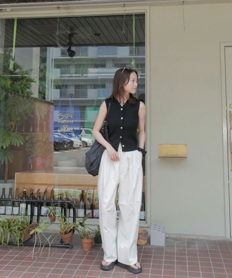 フロントに施されたシェルボタンが、夏らしい雰囲気を引き立ててくれます。