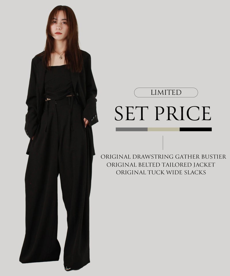 【SET価格】tailored jacket +gather bustier+ wide slacks<3点セット>