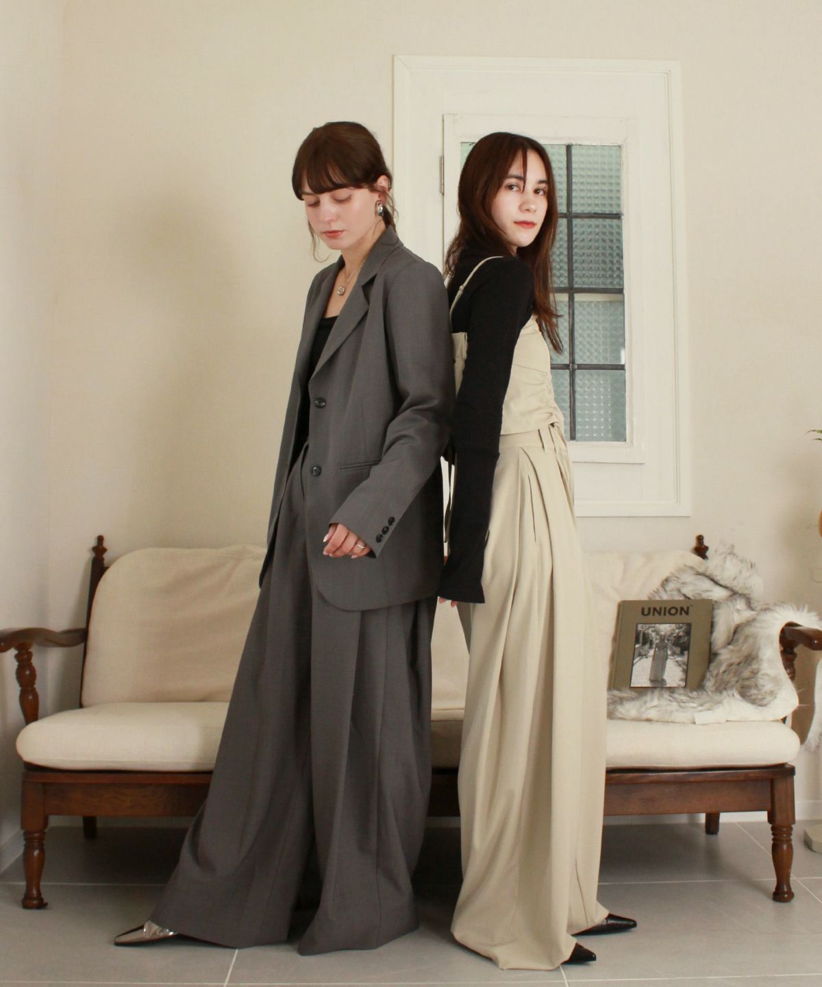 他の画像を見る 【SET価格】tailored jacket + tuck wide slacks<2点セット> 定価 ¥ 23,100 のところ ¥ 18,700 税込 販売期間 2025/08/15 12:00 〜 詳細を見る お気に入りに登録する