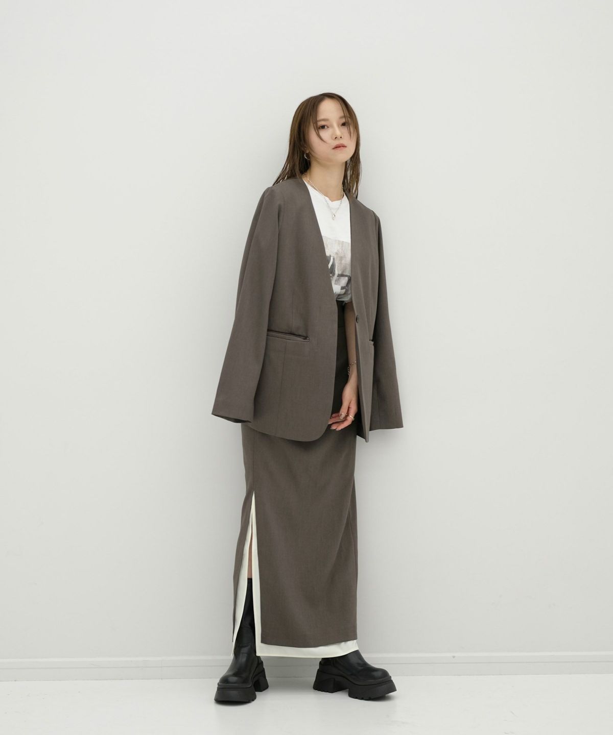 他の画像を見る 【LIMITED PRICE】 【SET価格】original oversize nocollar jacket+original side gather long slit skirt ORIGINAL 定価 ¥ 27,500 のところ ¥ 24,200 税込 販売期間 2025/09/30 12:00 〜 詳細を見る お気に入りに登録する