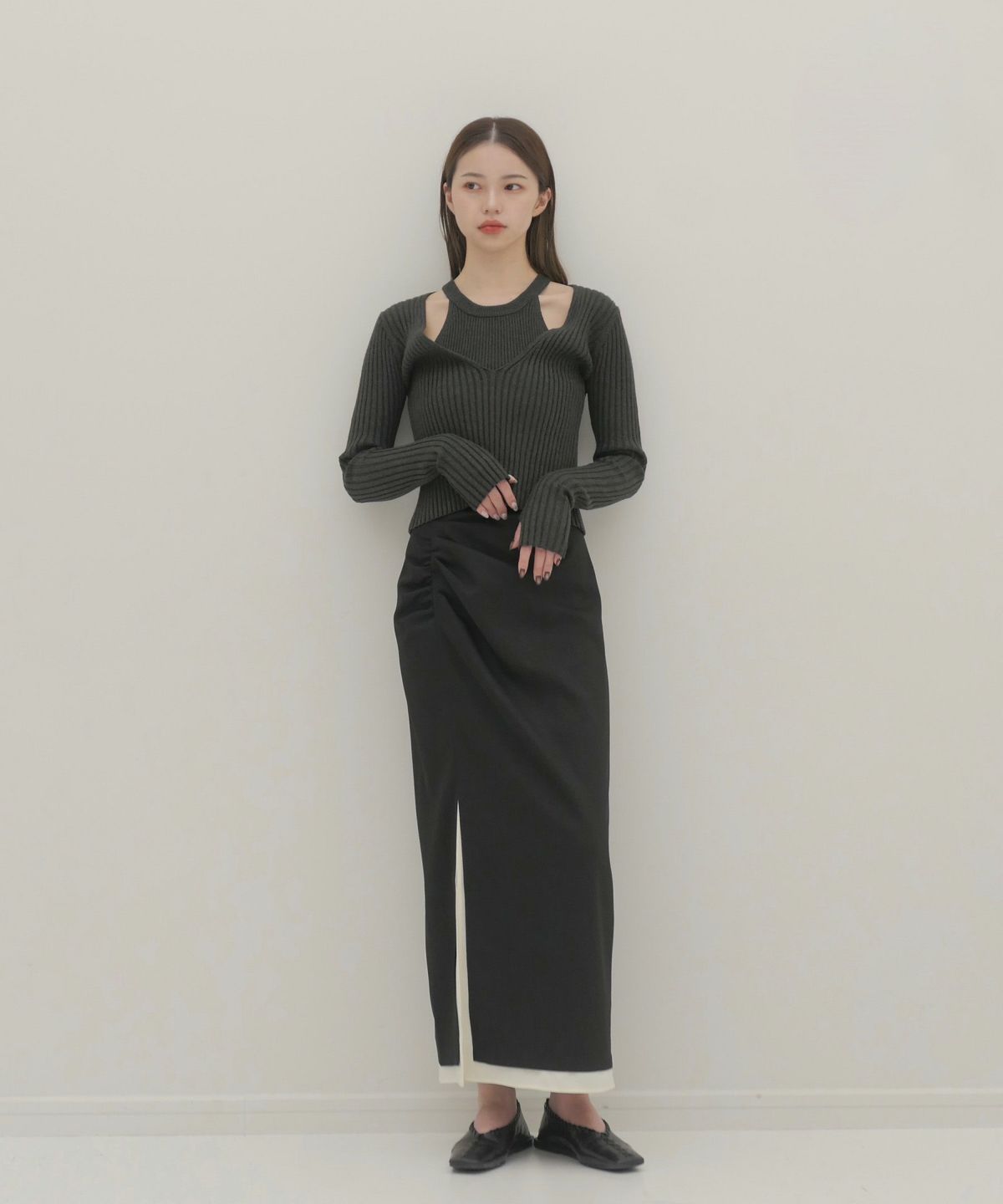 他の画像を見る 【LIMITED PRICE】 original side gather long slit skirt ORIGINAL 定価 ¥ 12,100 のところ ¥ 10,450 税込 販売期間 2025/11/03 12:00 〜 カートに入れる お気に入りに登録する