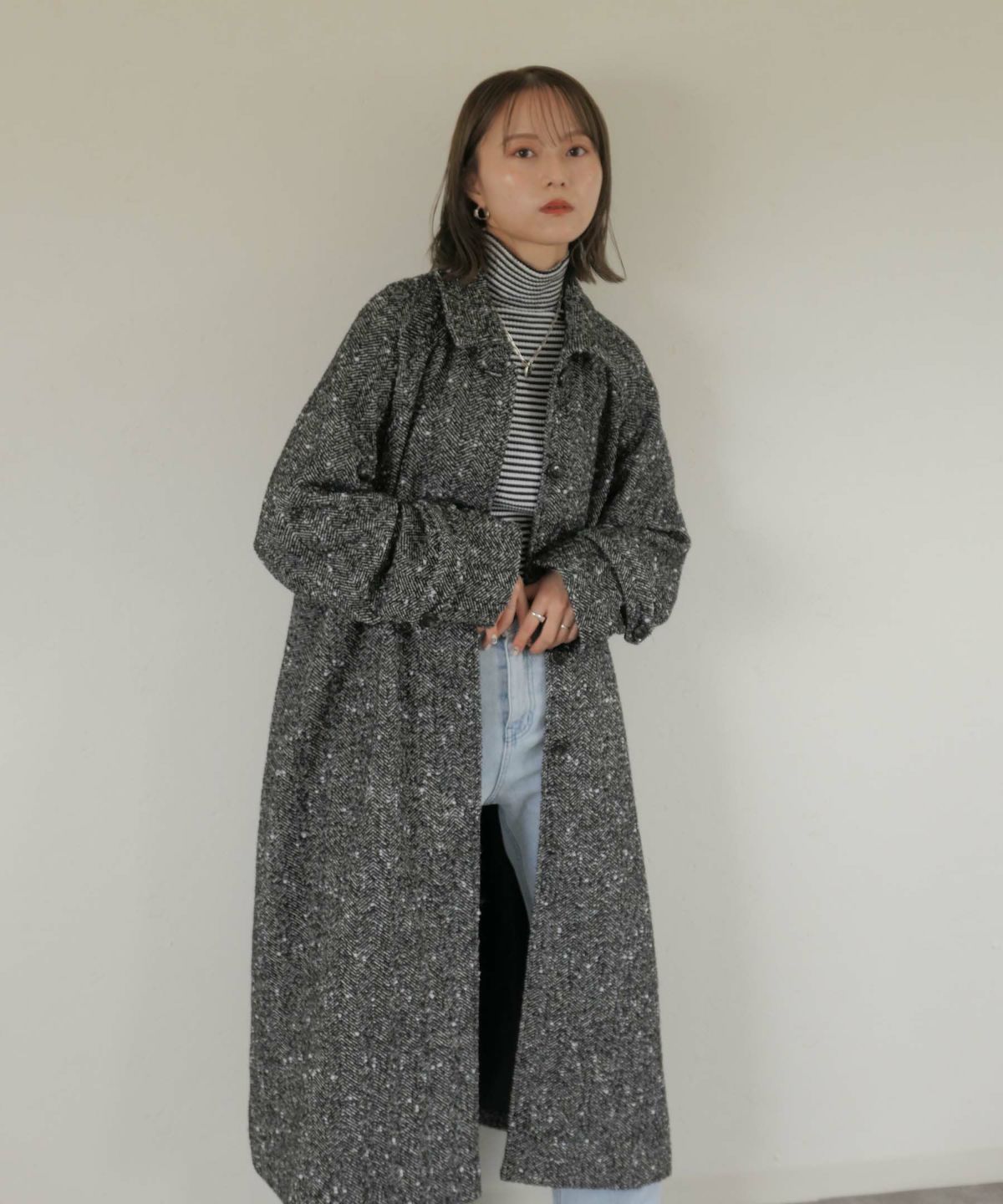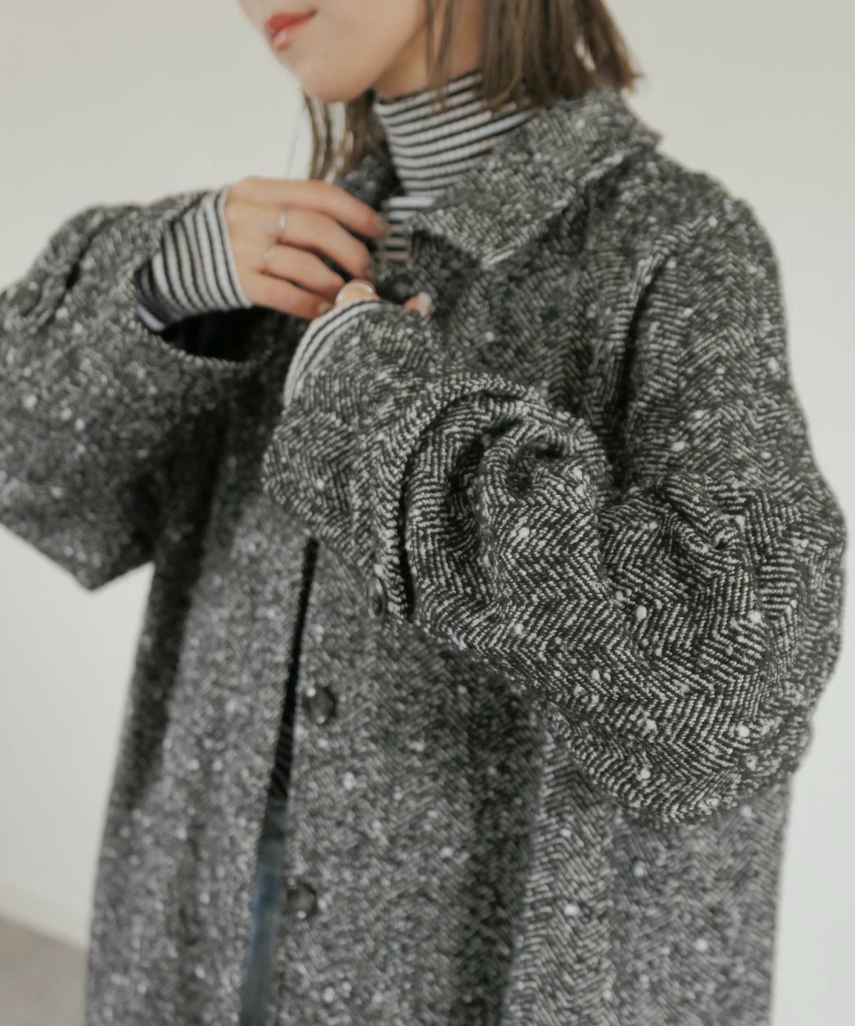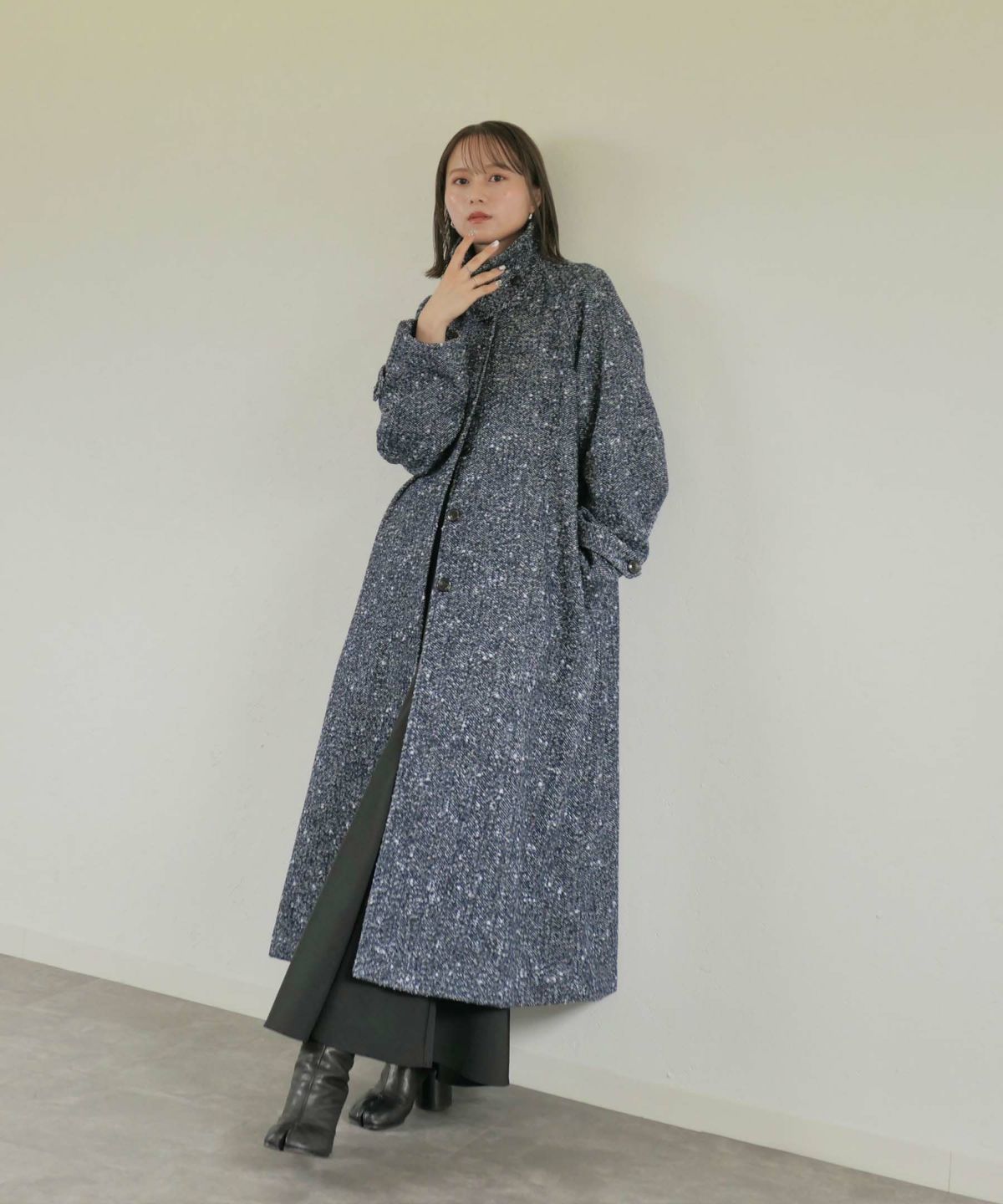 他の画像を見る original stand collar wool tweed coat ORIGINAL 定価 ¥ 25,300 のところ ¥ 18,150 税込 販売期間 2025/02/25 12:00 〜 カートに入れる お気に入りに登録する