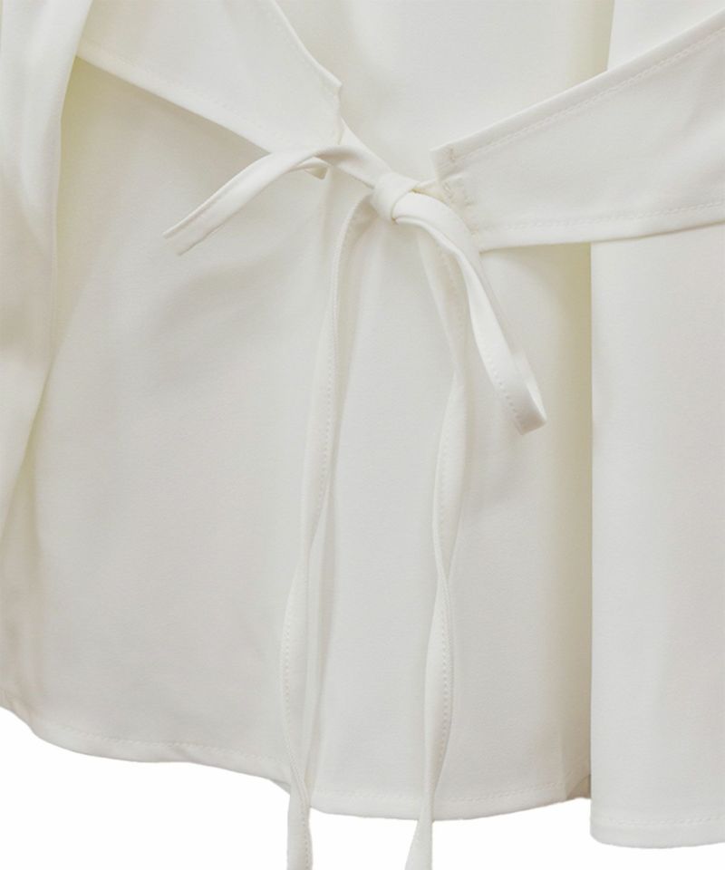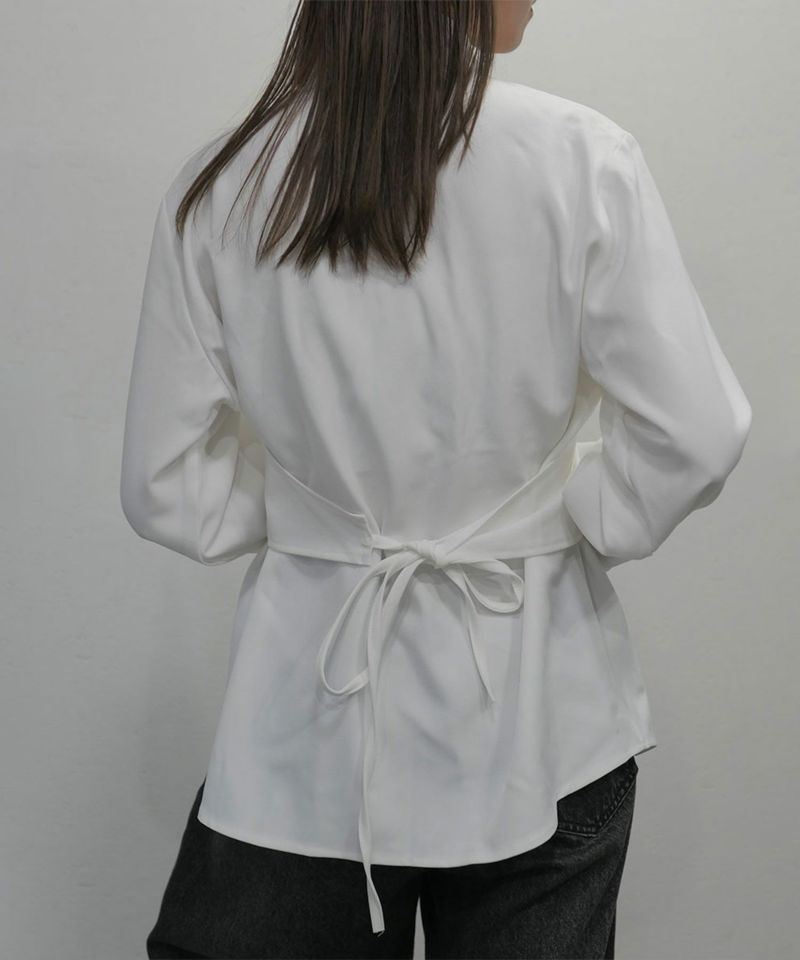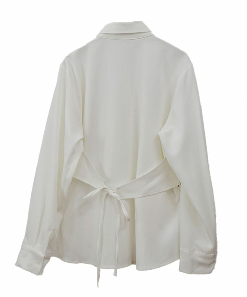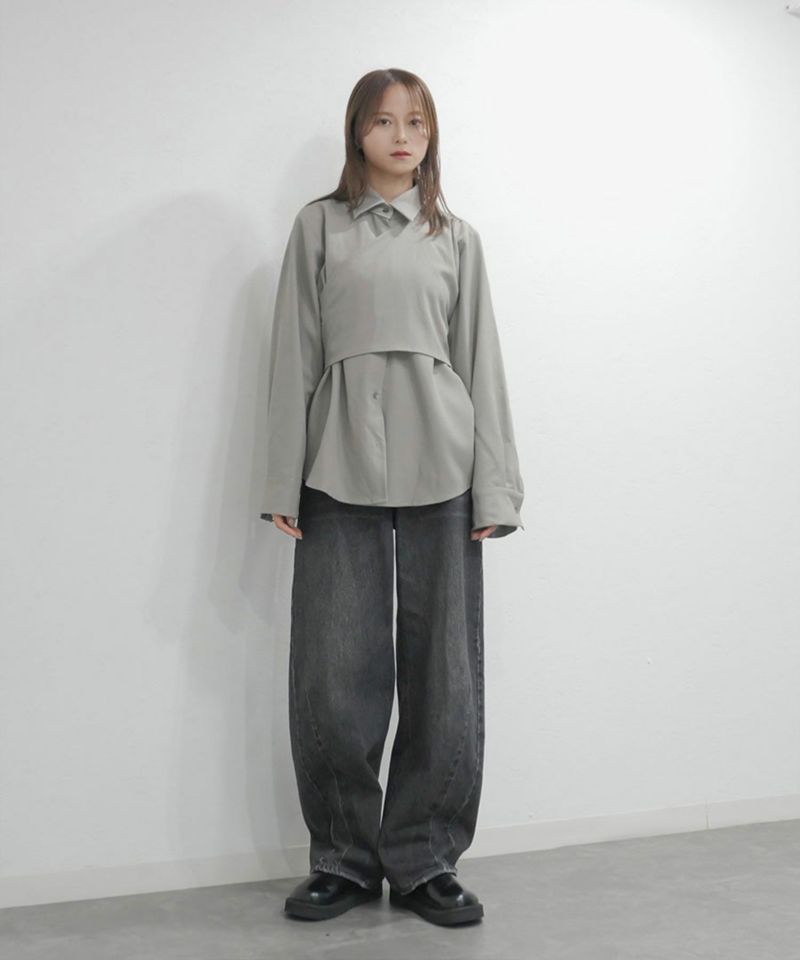 トレンド感のあるワンショル風のレイヤードデザインになったシャツは