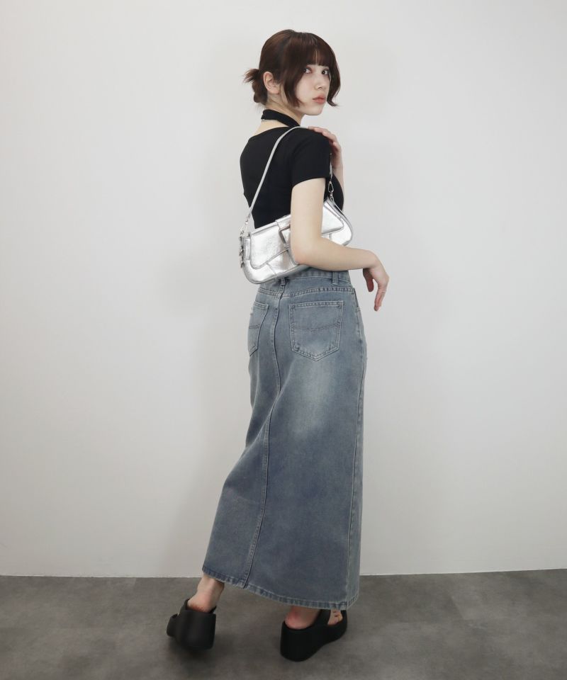 夏のマストアイテムのデニムスカート!Sサイズはペタンコ靴でもローライズで問題なく着れます◎
