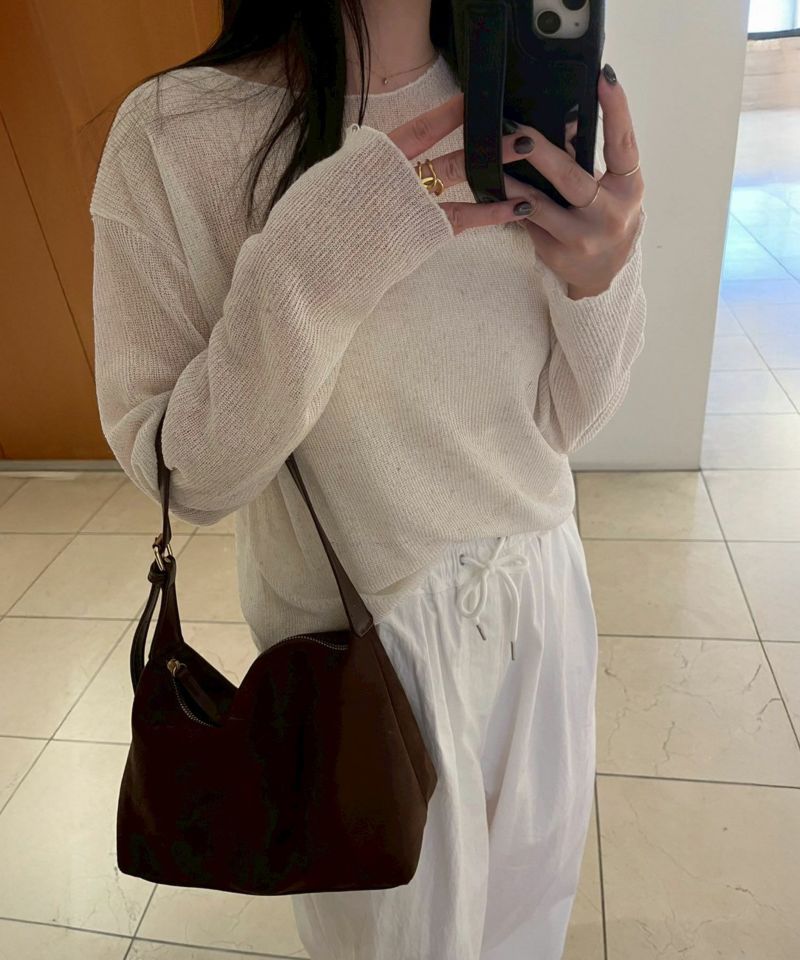 シンプルで洗練された、クルーネックのシアートップス。 無駄のないシンプルなシルエットながらも、 ルーズなサイジングが抜け感を演出します。