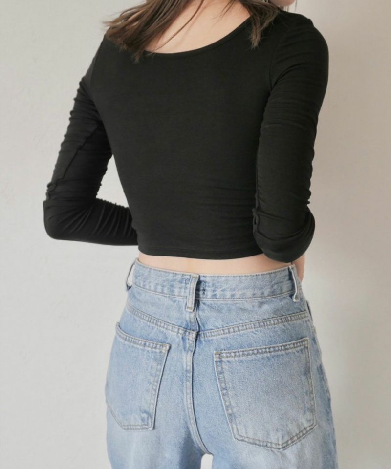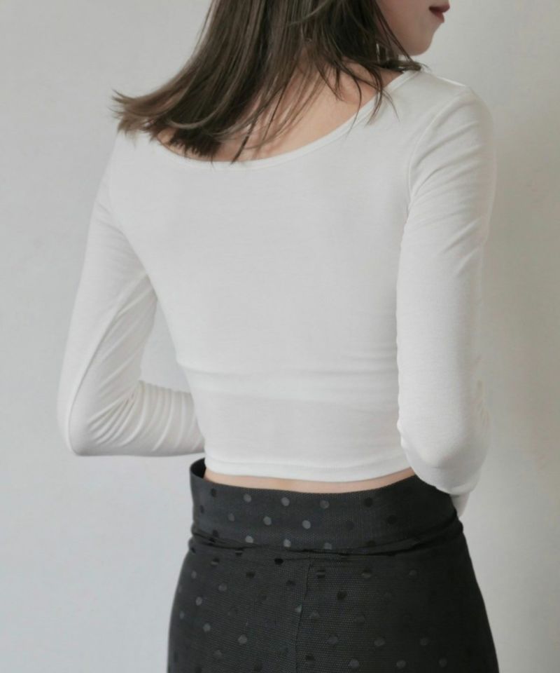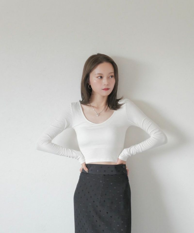 シンプルながらも大きく開いた襟元が ヘルシーな抜け感を演出してくれるクロップドトップス。 シンプルなカップインクロップドトップ。 カップ下はしっかりゴムが入っておりフィット感のある安心トップ。 大き目に空いた襟元はデコルテをきれいに見せてくれヘルシーな抜け感を演出してくれます。 トレンドライクなクロップド丈なのでベーシックなデニムなどのボトムスと合わせても 旬なスタイリングに仕上がります。 首元にチョーカーなどを巻いた旬なアレンジもおすすめ。 1枚でさらっと着れるラクさもありながら、ヘルシーで旬なスタイリングに仕上がるトップスです。 SOLD OUTの場合もぜひ「入荷お知らせメール」をご利用ください。 再販売の際にメールでご連絡させていただきます。 ※商品によっては再入荷しない場合もございます。
