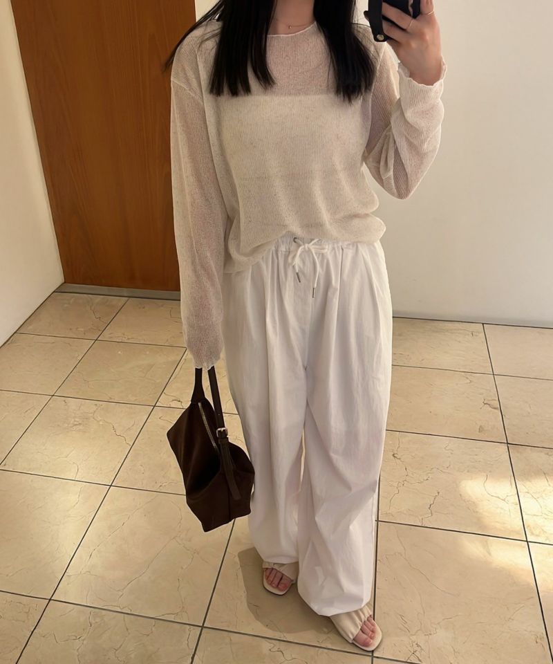 薄手で軽やかなシアー素材で、肌に優しく柔らかな着心地が魅力。 通気性もよく、春から秋口にかけてロングシーズン活躍します。