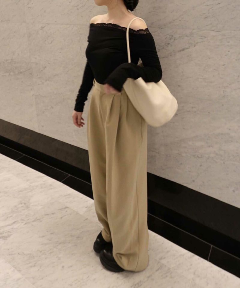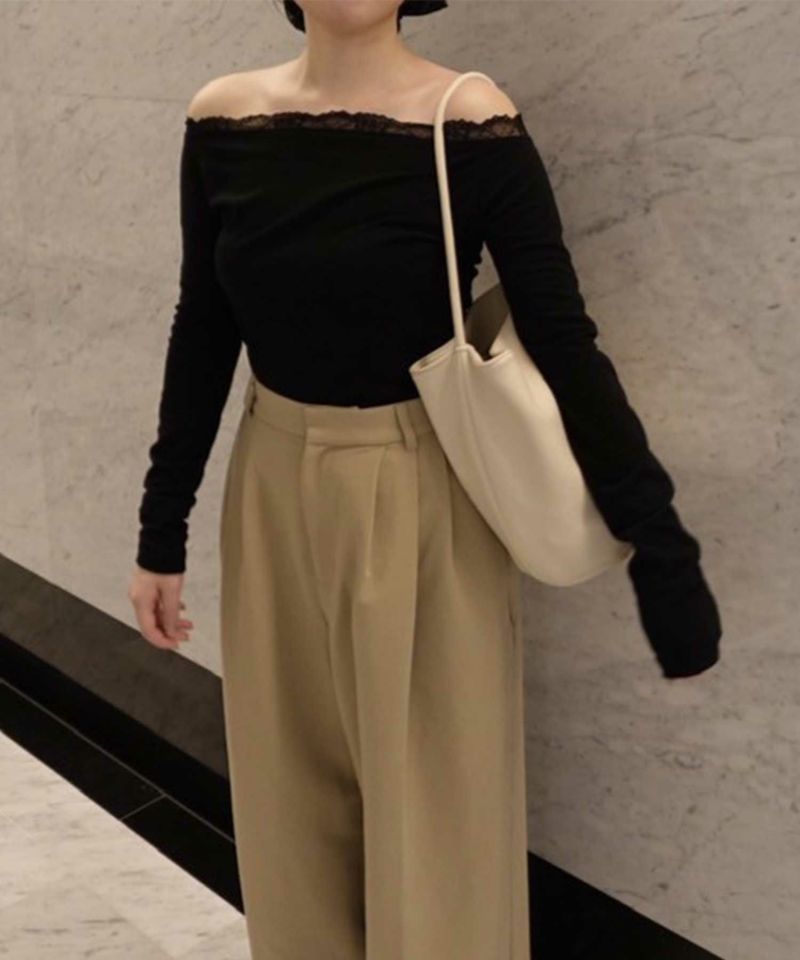 ひろめのボートネック仕様が、レイヤードスタイルに活躍。