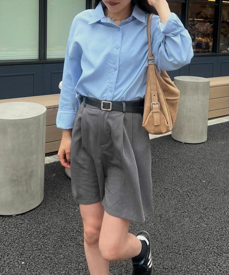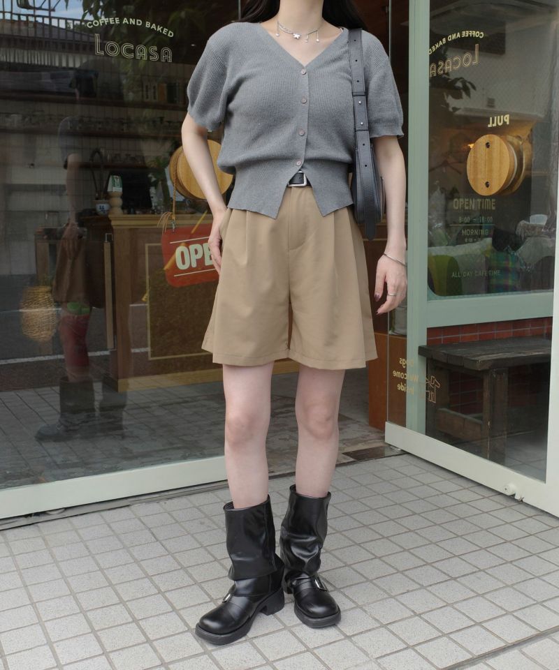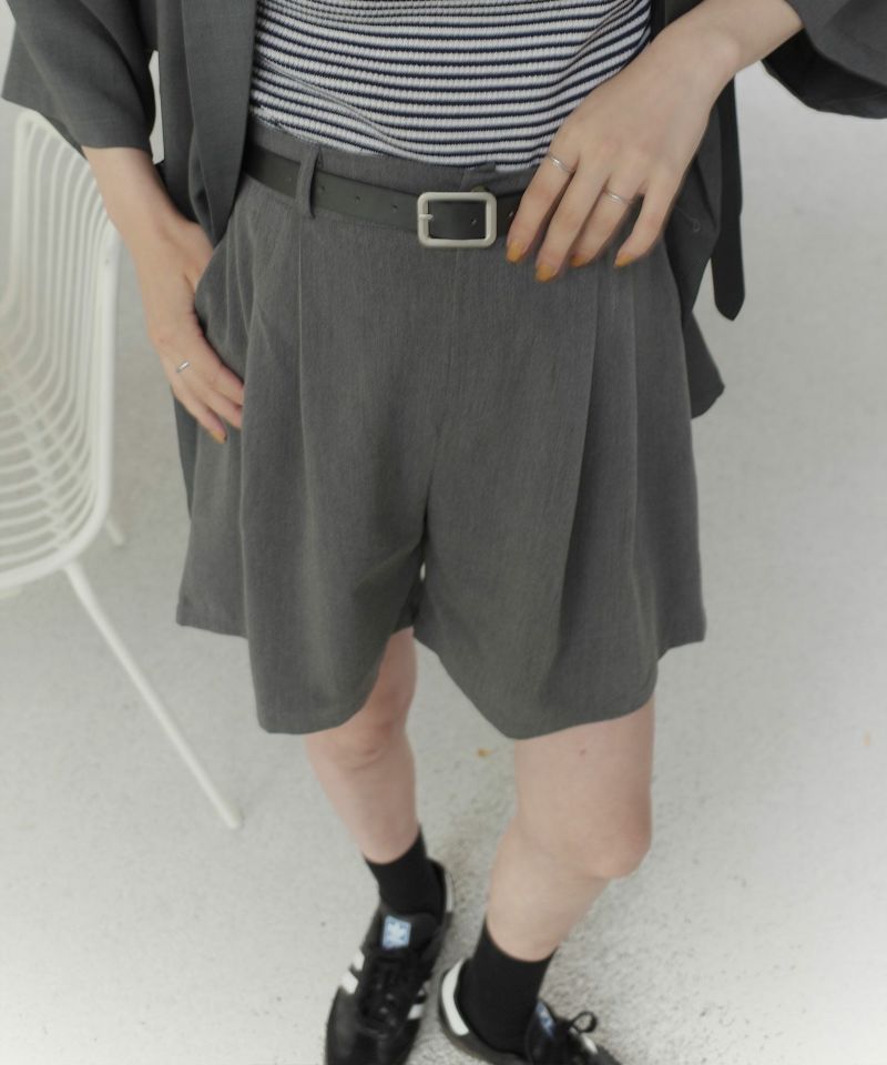 シンプルなデザインの、ベルト付きハーフパンツ。