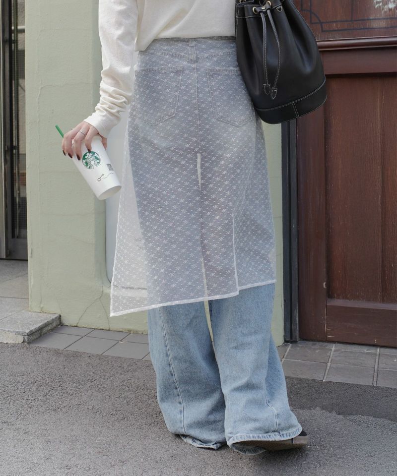 繊細なレース素材が華やかさを引き立てる、ラップタイプの膝丈スカート。