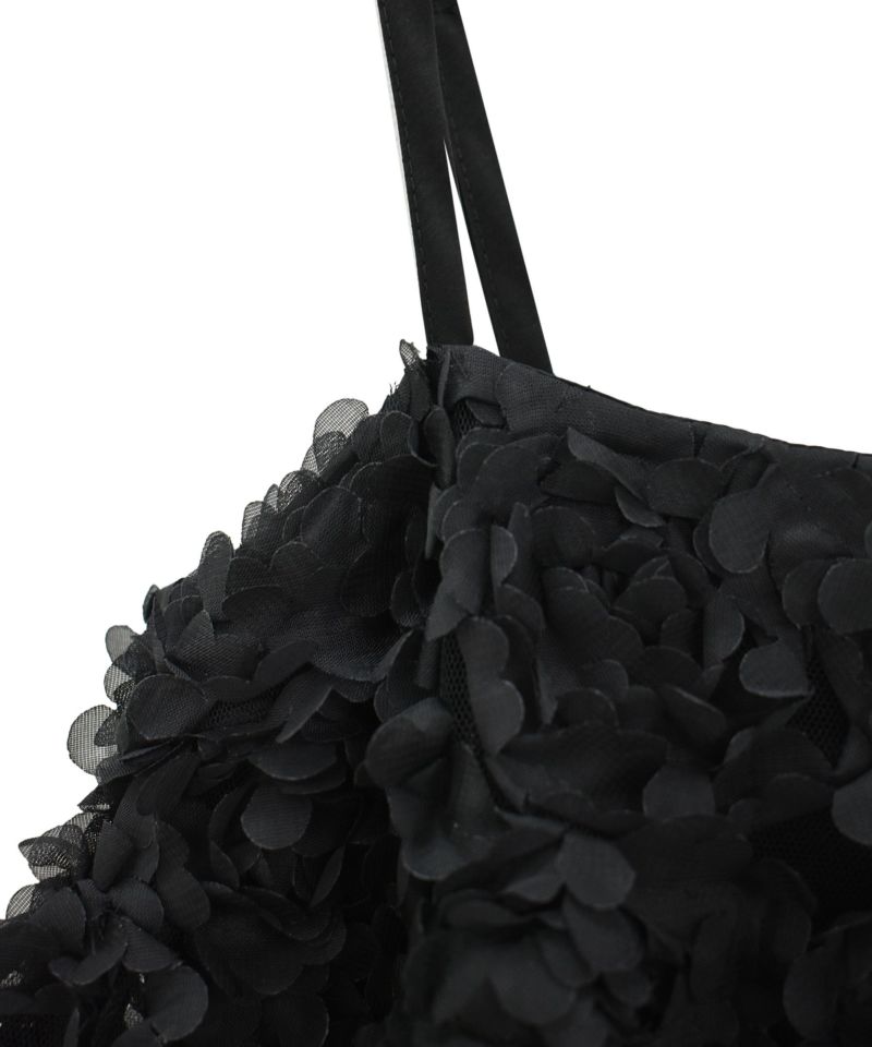 軽やかなベースに、繊細な花びら状の立体装飾を施した贅沢な一枚。