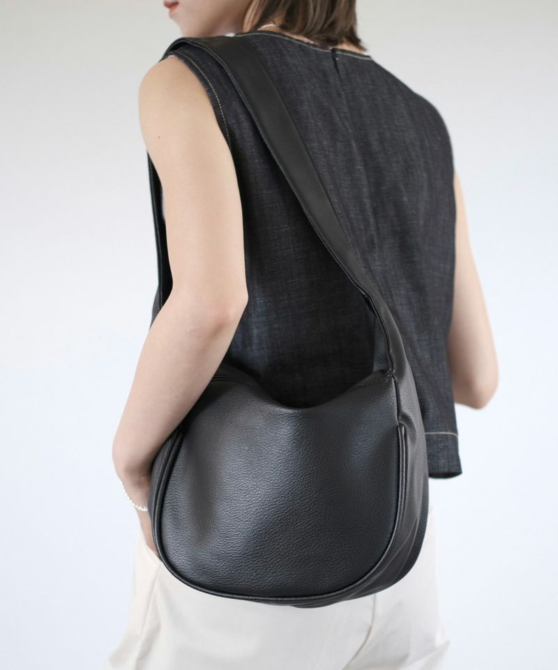 大人気のハーフムーンバッグに ふんわり肌触りのよい柔らかな合成皮革で仕上げたアイテムが新登場♡ 内側にポケットが3つ付いていて荷物の整理整頓に役立ちます。 ファスナー付きの内ポケットも付いているので、 鍵や無くしやすい小物などいれても安心です◎