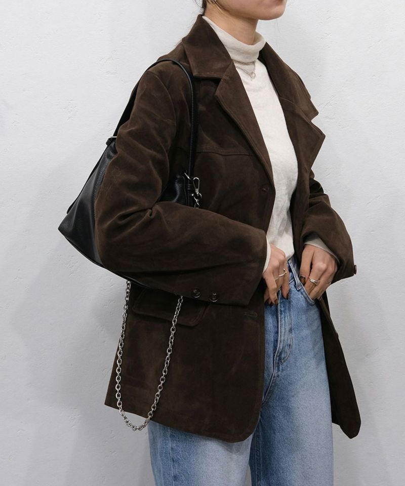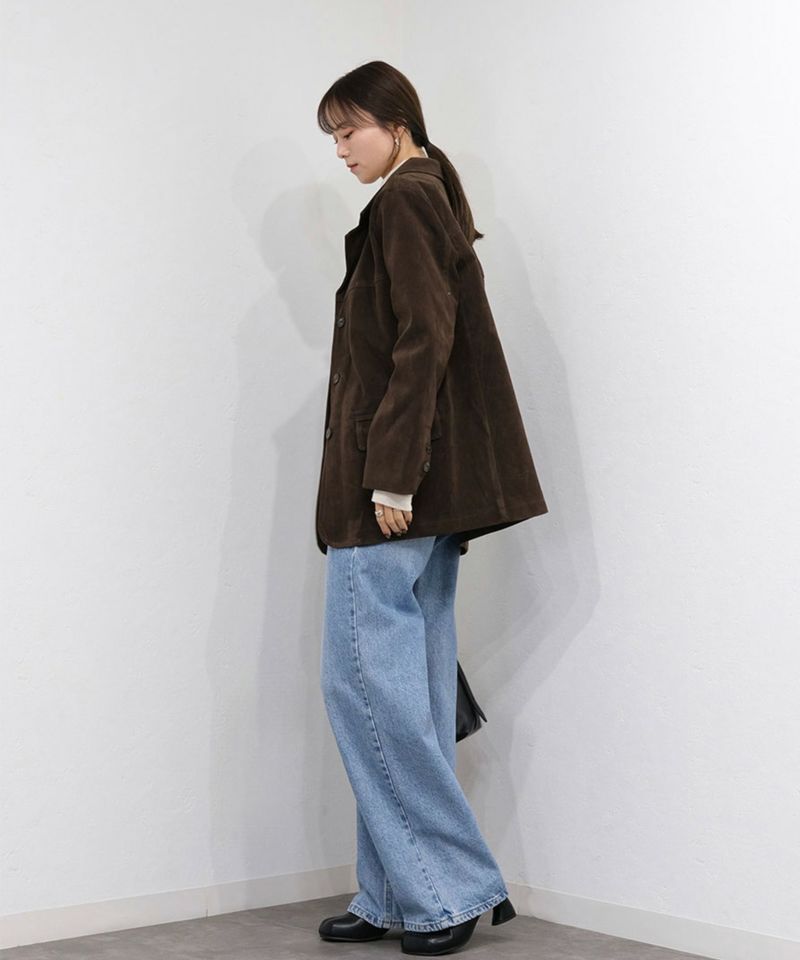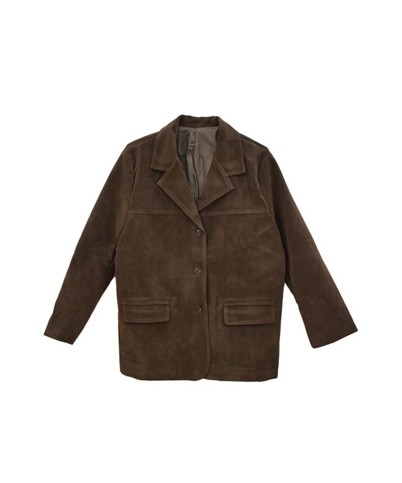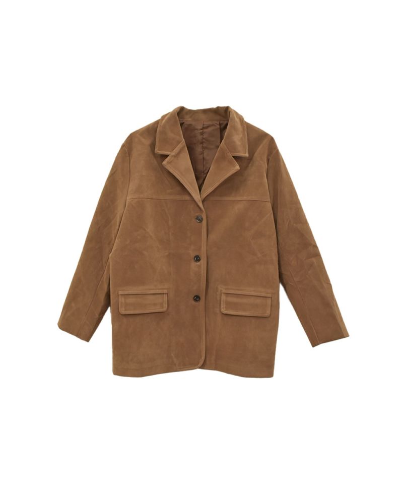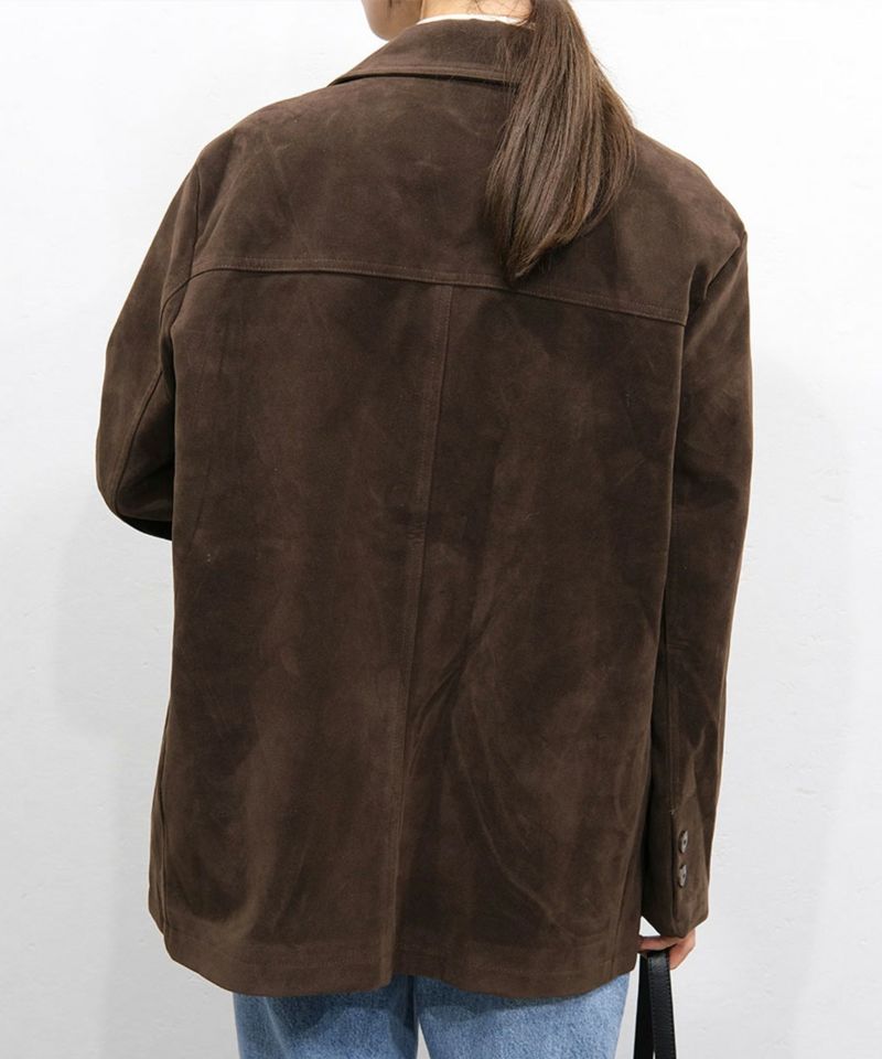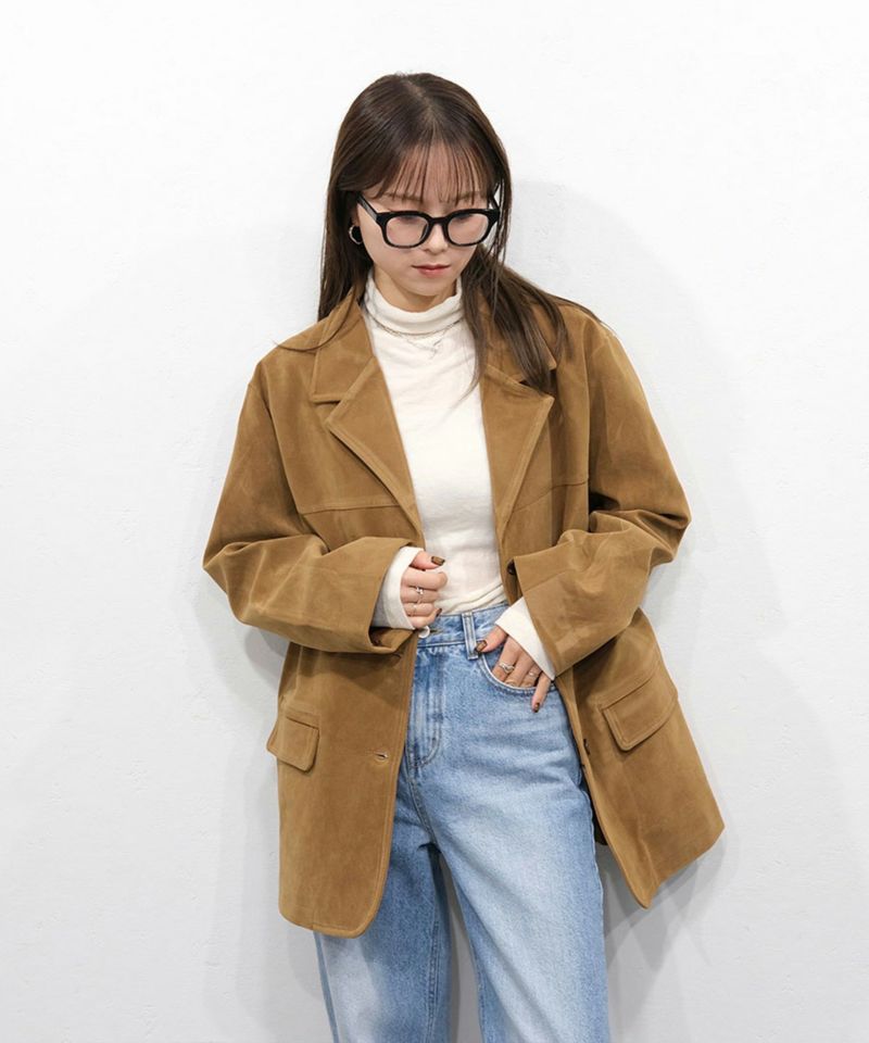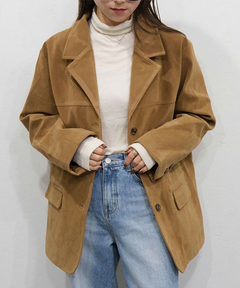 スウェード生地の高見えジャケット。 厚みとハリのある生地感で、 コーディネートに取り入れるだけで、モードカジュアルな印象に◎ 風を通しにくい素材なので、秋冬取り入れたいアイテム。