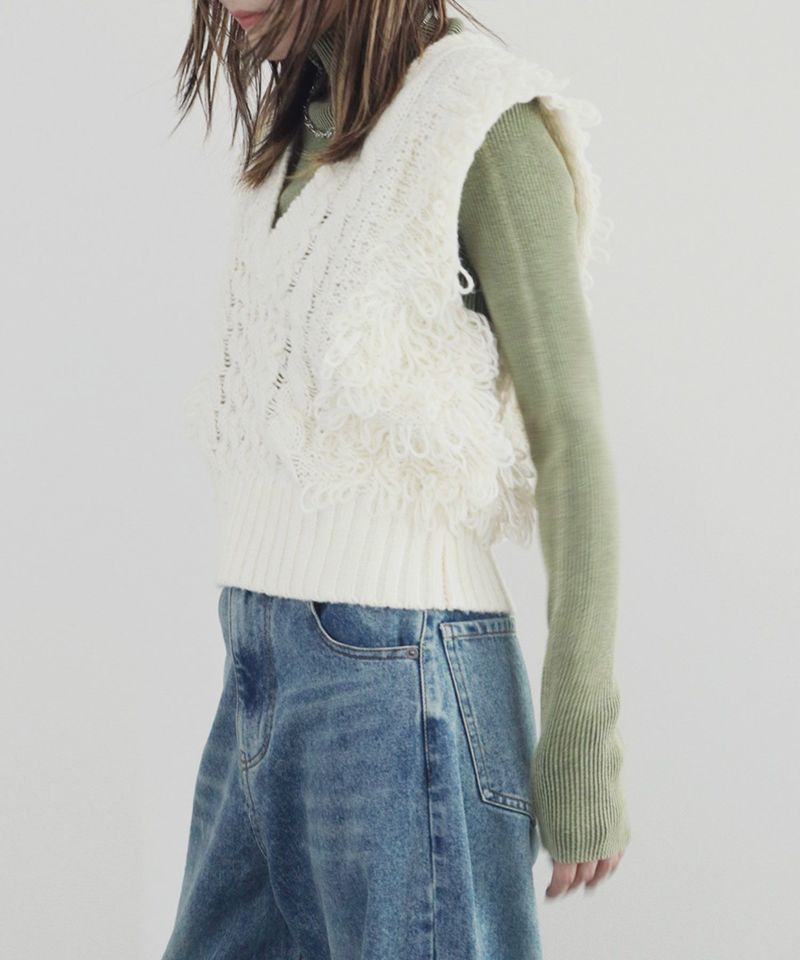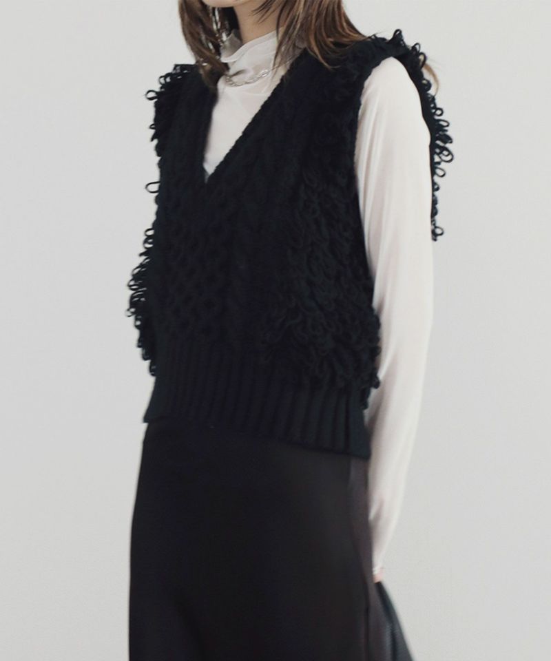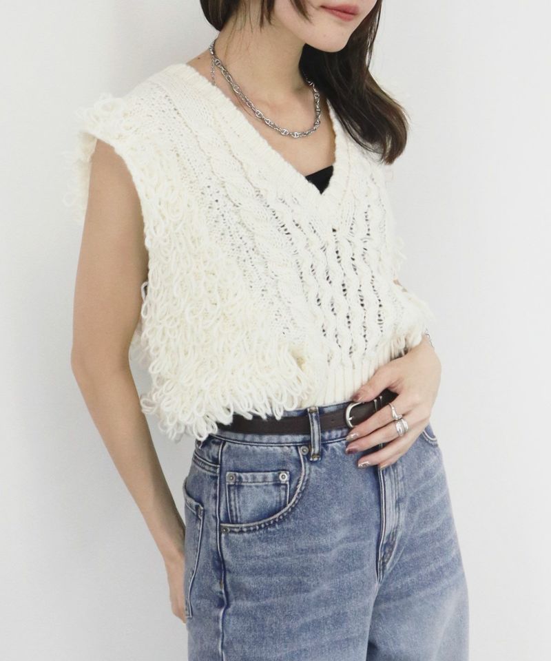 シンプルで使いやすいシルエットに 存在感のあるループヤーンが織り込まれたニット生地の 絶妙な組合わせが目を惹くアイテム。 ショート丈仕様なので足を長く見せてくれる スタイルアップ見え効果にも期待できます◎
