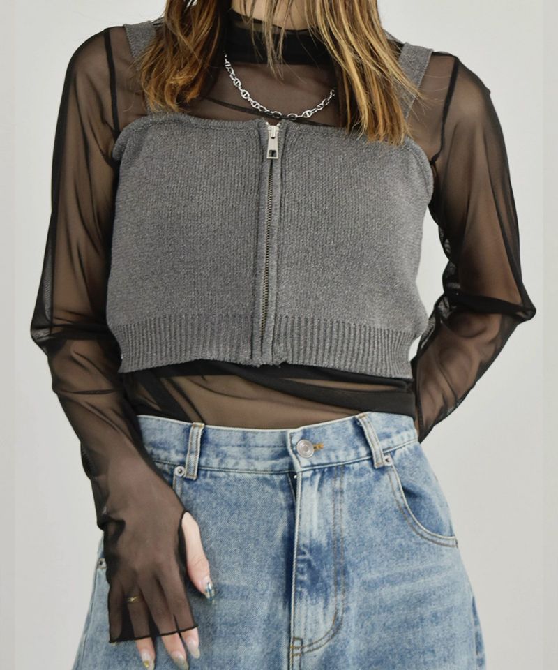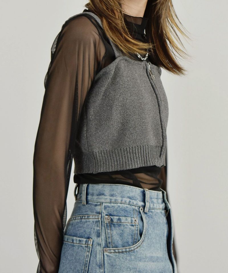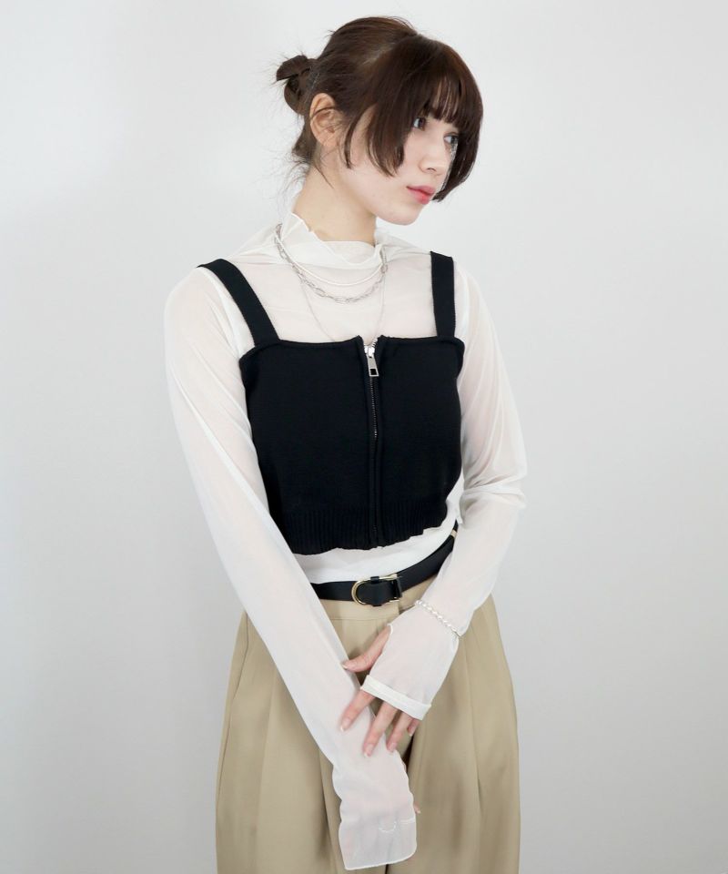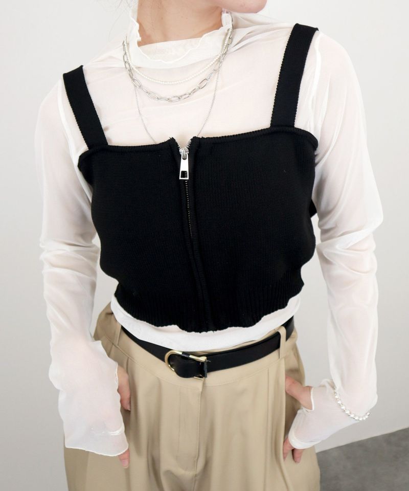フロントジップがポイントのどんなコーデにも合わせやすいシンプルなニットビスチェ。 いつものコーデにプラスするだけで ワンランクUPのオシャレ見えアイテムとして欠かせないビスチェに、 普段使いのしやすいアイテムが新登場♡
