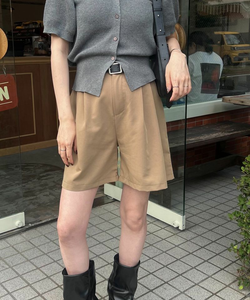 シンプルなデザインの、ベルト付きハーフパンツ。