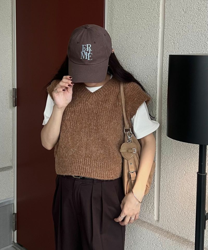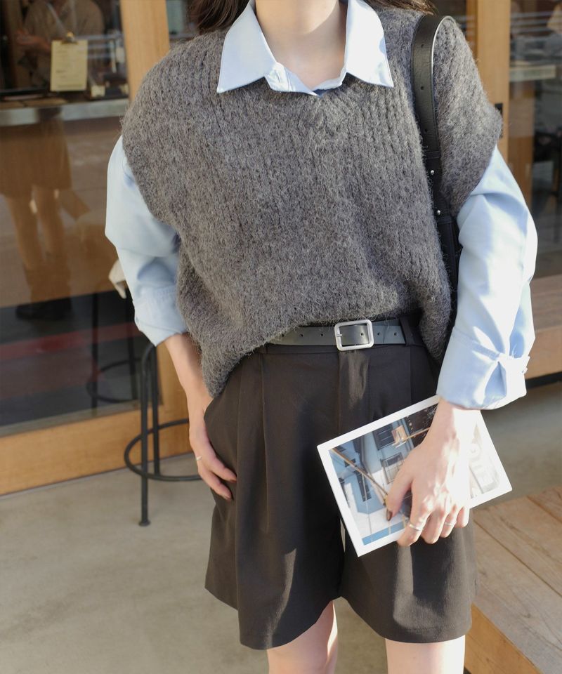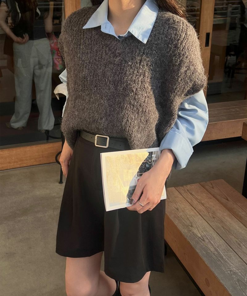ほどよい厚みともこもことした柔らかな質感がかわいいニットベスト。