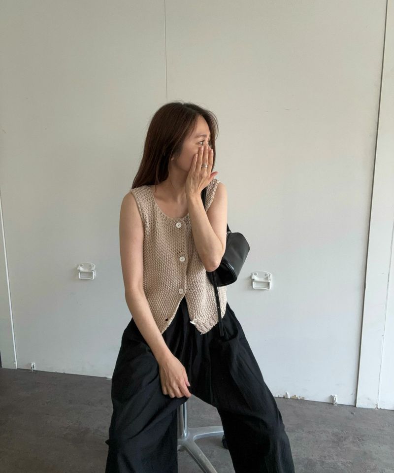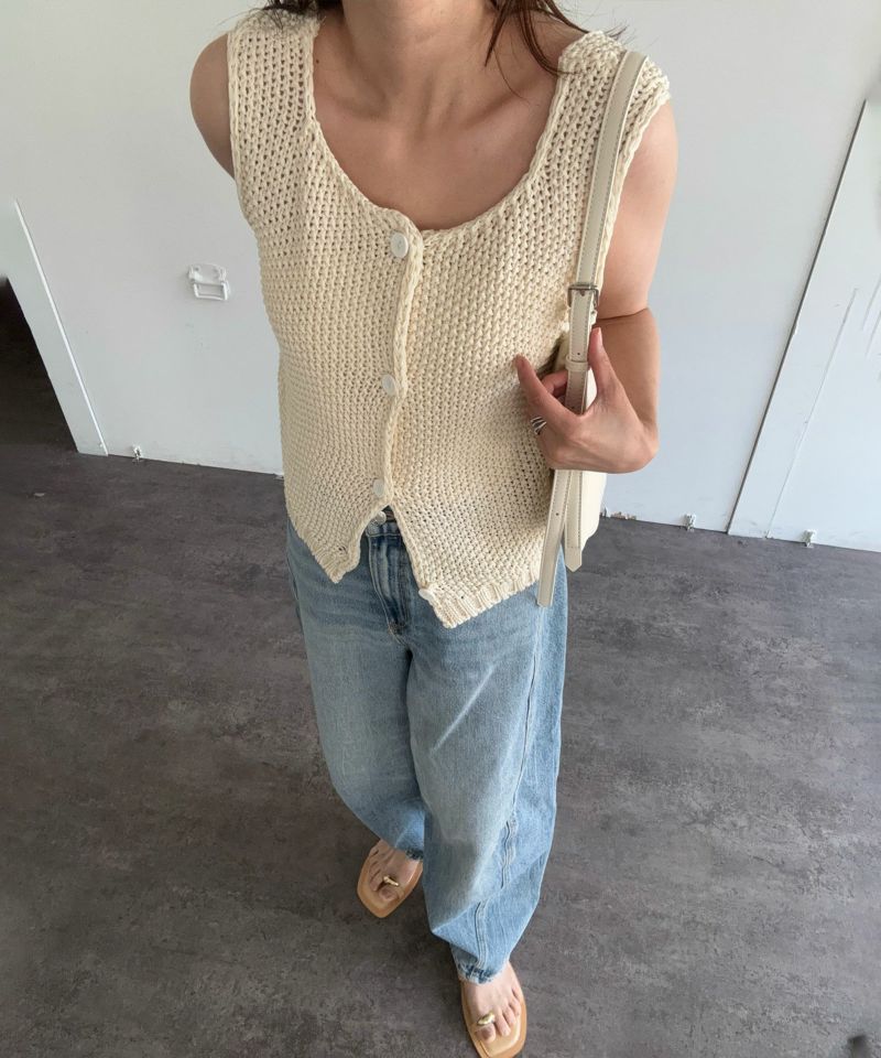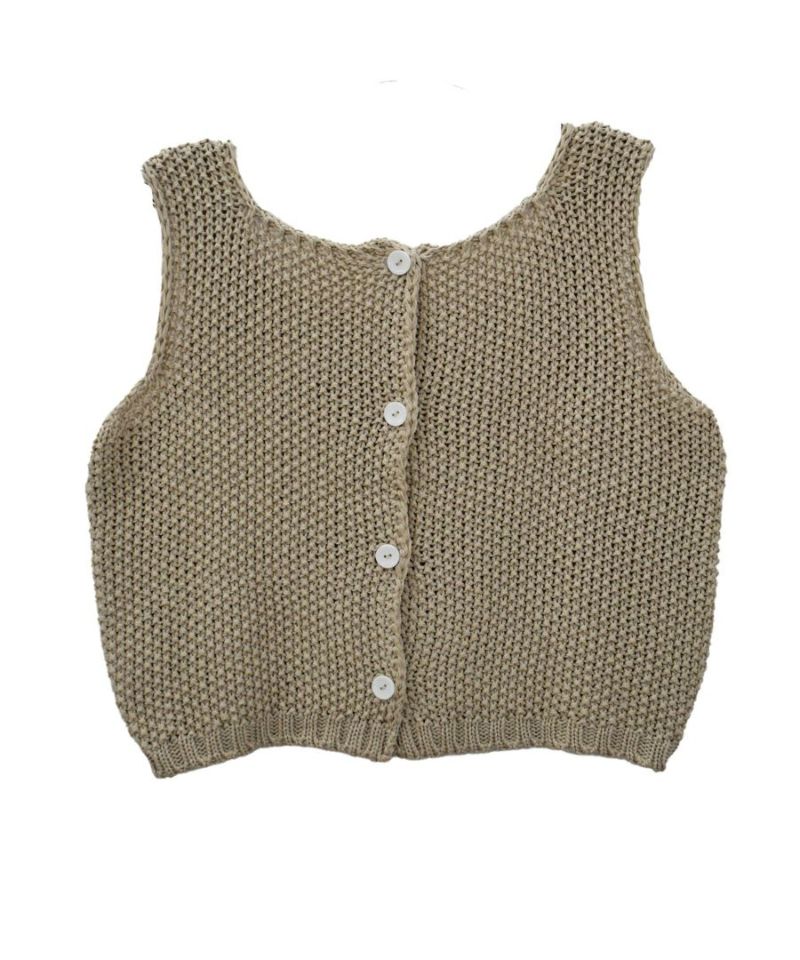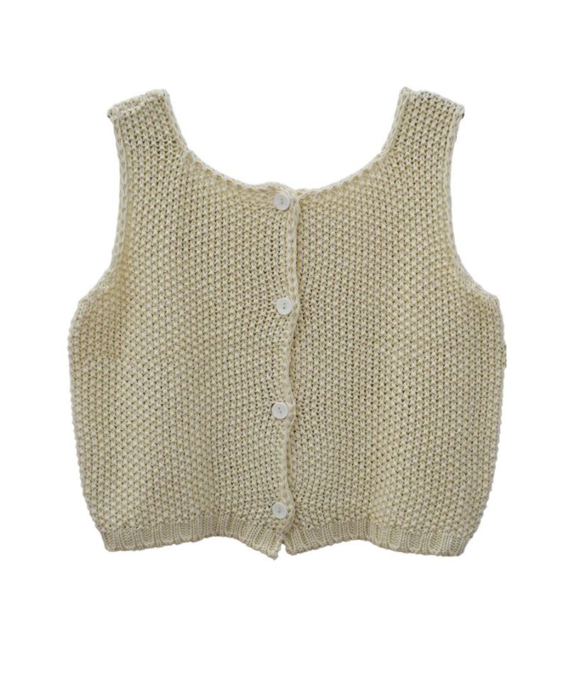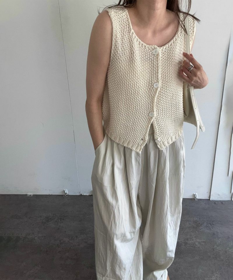 シンプルながらも温かみのあるデザインが魅力のニットベスト。