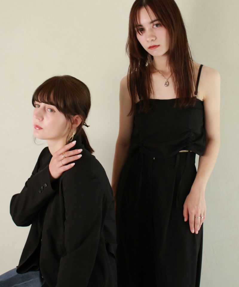 前後にギャザーリボンを施した、シルエット調整可能なビスチェ。