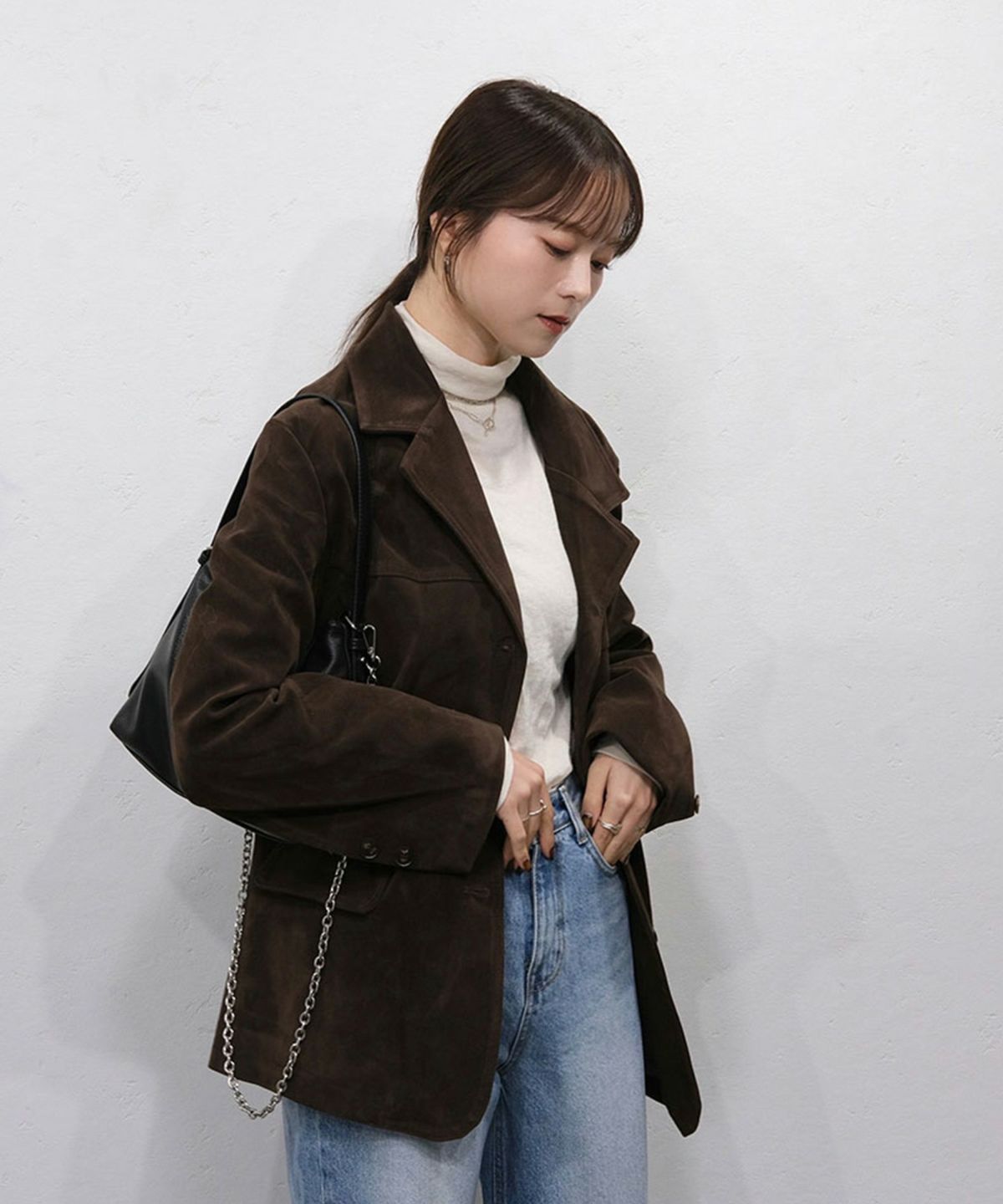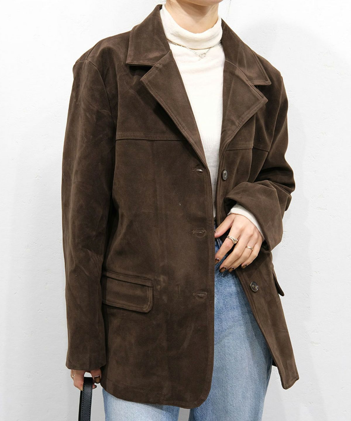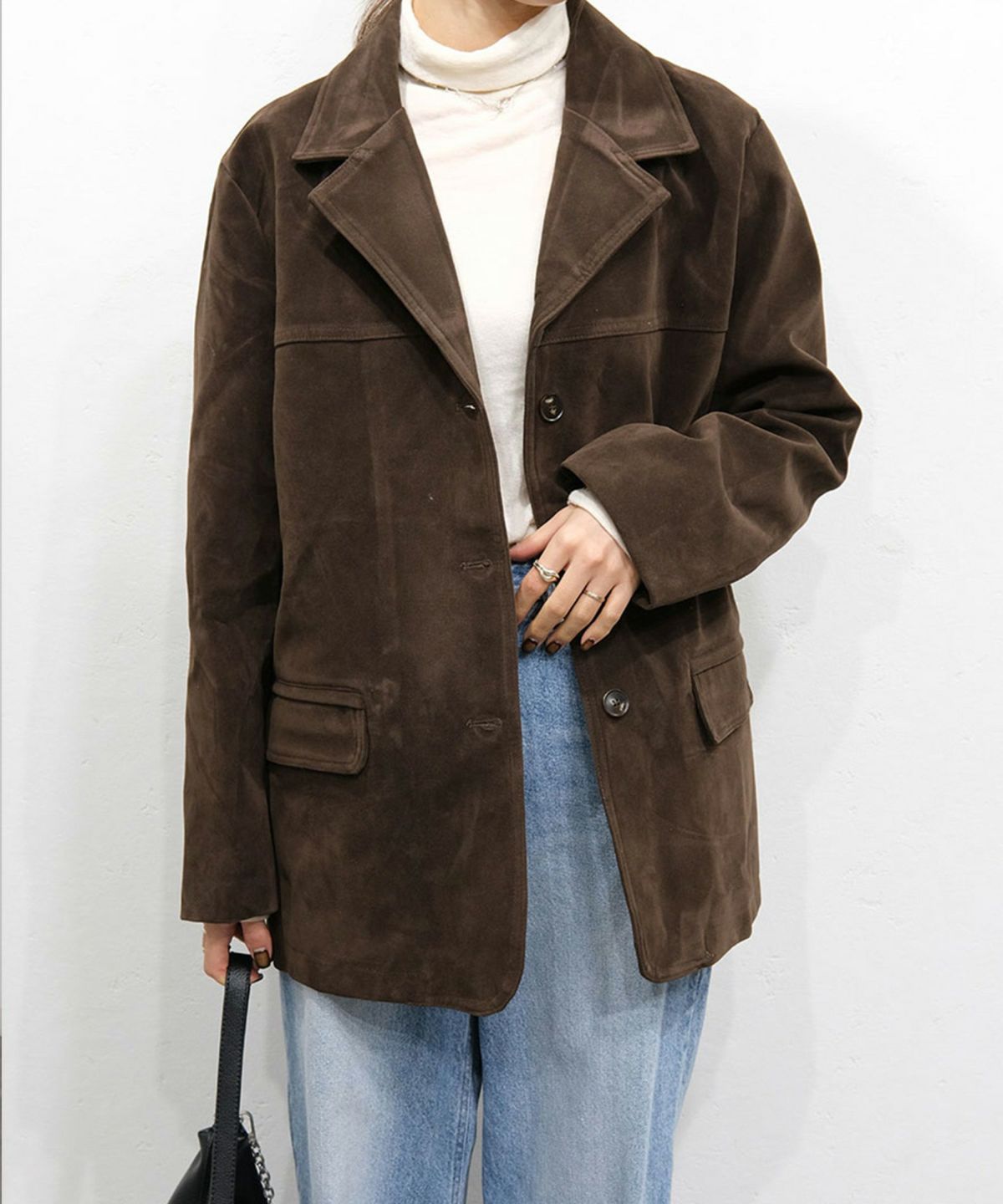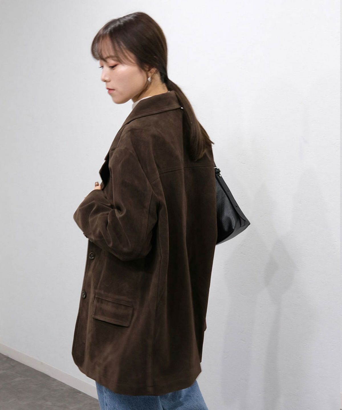 他の画像を見る 【SALE】 suede tailored jacket 定価 ¥ 17,050 のところ ¥ 16,500 税込 販売期間 2025/11/12 20:00 〜 在庫切れ カートに入れる お気に入りに登録する