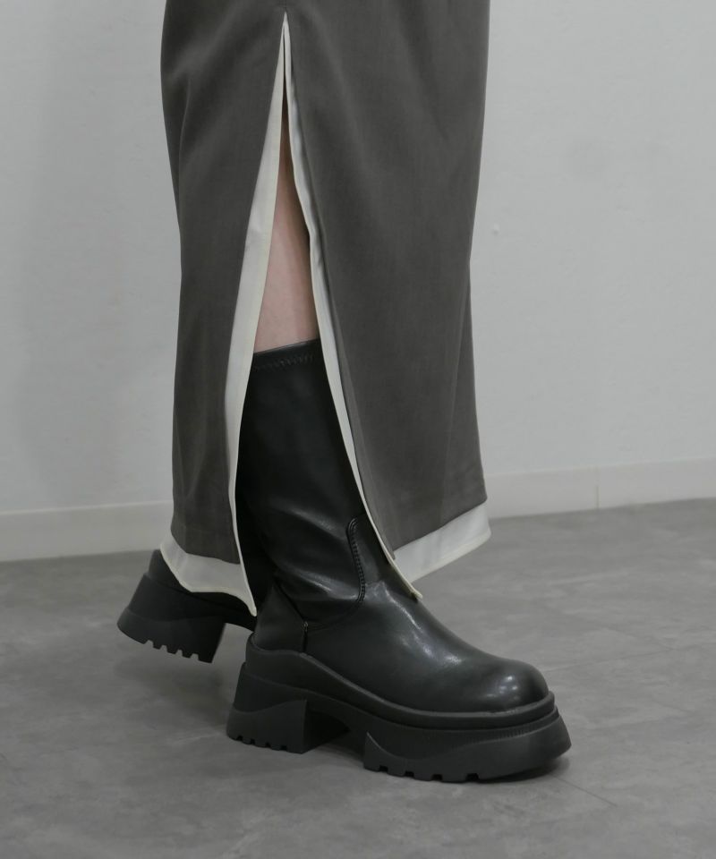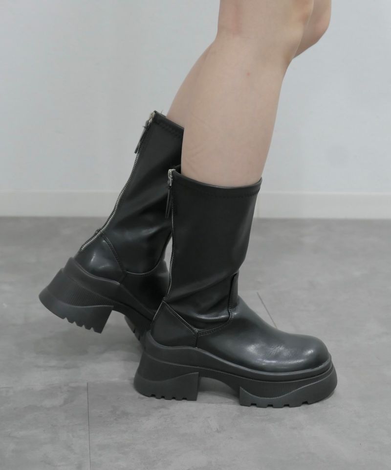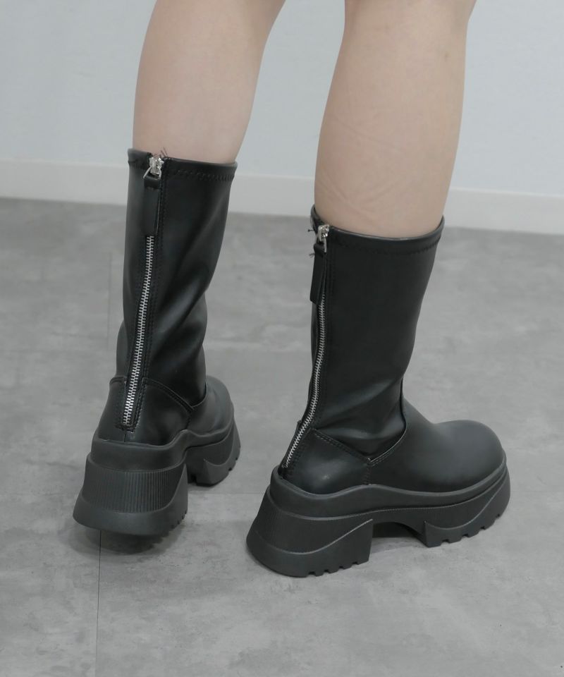 足首にしっかりフィットするストレッチデザインと 厚底ソールでスタイルアップ見え抜群のブーツ♡ 存在感のある厚底に足首がほっそり見えるストレッチデザインのブーツ。 つま先は丸くなっており、窮屈感無く履き心地抜群◎ クッションも入っており厚底でも疲れにくいところもうれしいポイント♡ 厚底ながらも歩きやすくさらに美脚見えもするおすすめブーツです。 SOLD OUTの場合もぜひ「入荷お知らせメール」をご利用ください。 再販売の際にメールでご連絡させていただきます。 ※商品によっては再入荷しない場合もございます。