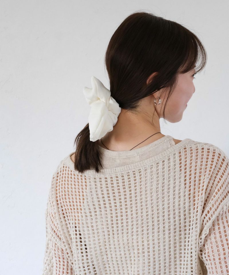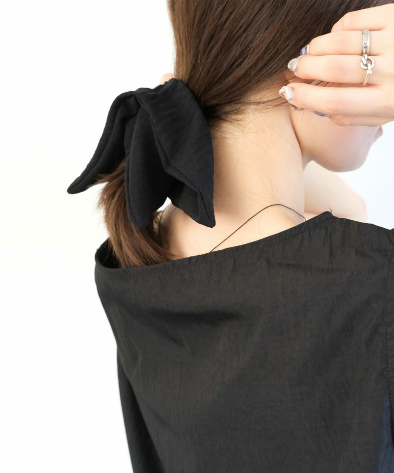ボリューム感のあるリボン風シュシュ。 シンプルながらも存在感があり、 さっと髪をまとめるだけでこなれた印象に。