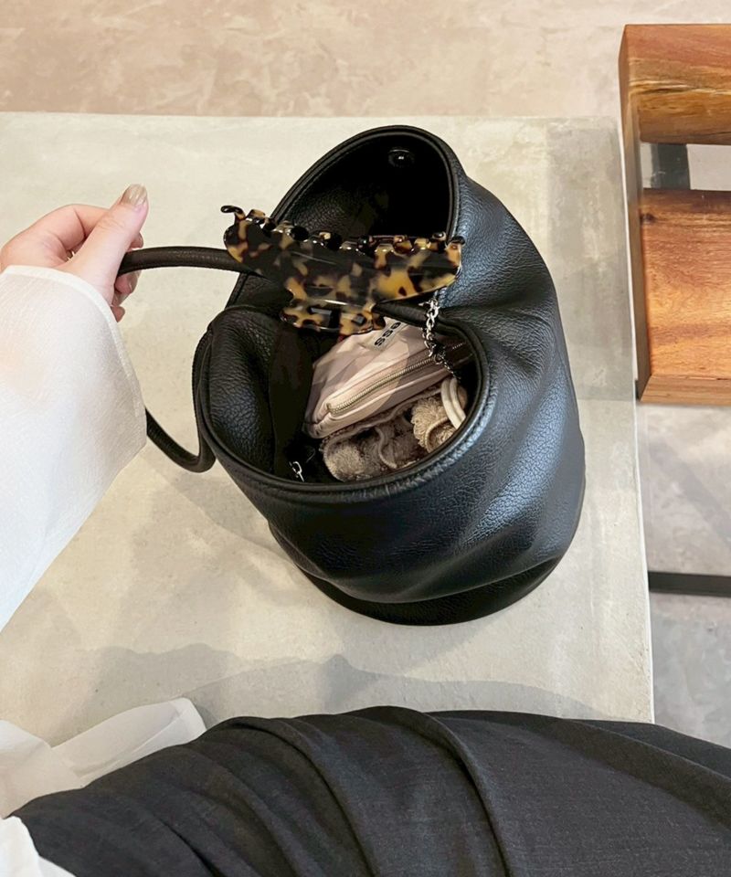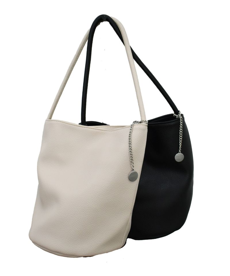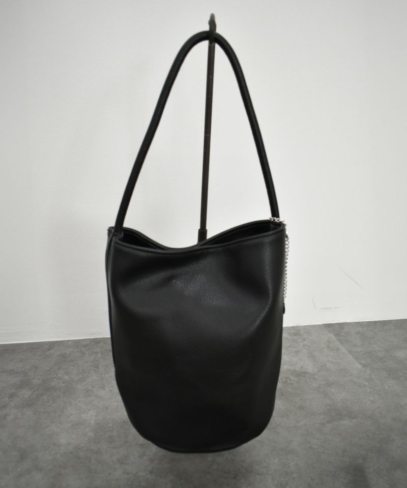 アクセントになるシルバーチャームが付いた 収納力抜群のバケツ型のトートバッグ。 500mlのペットボトルも楽々収納が可能です✓ 内側にはポケットも2つ付いているのも嬉しいポイント。