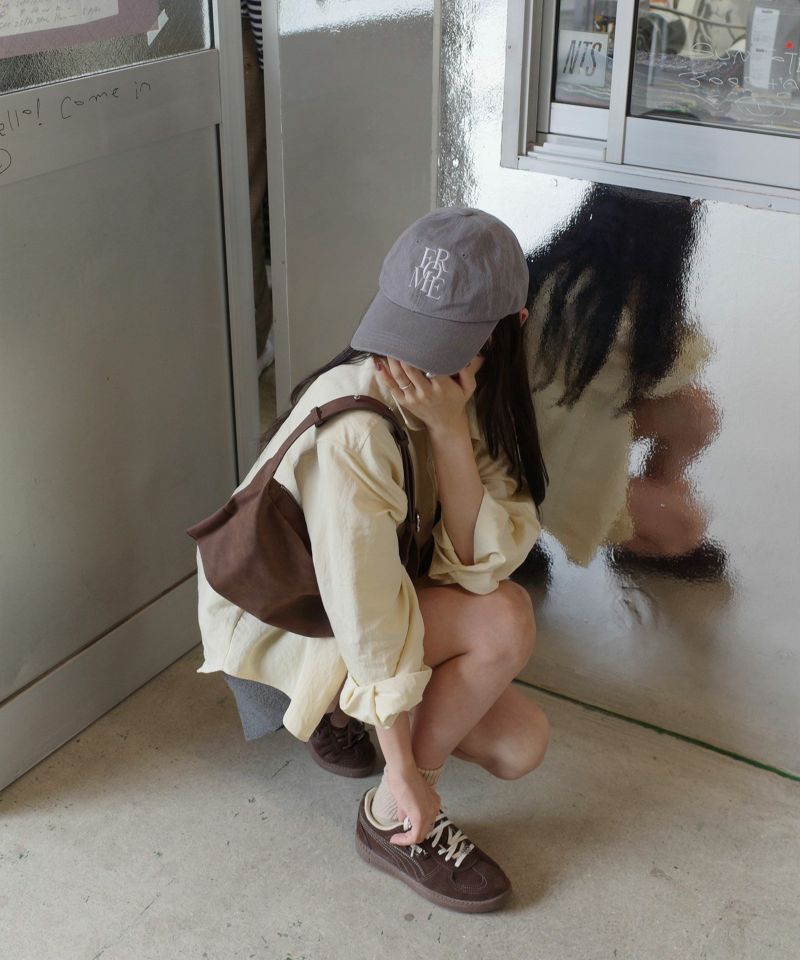 フロントに施されたシンプルな英字刺繡が存在感を放ち、