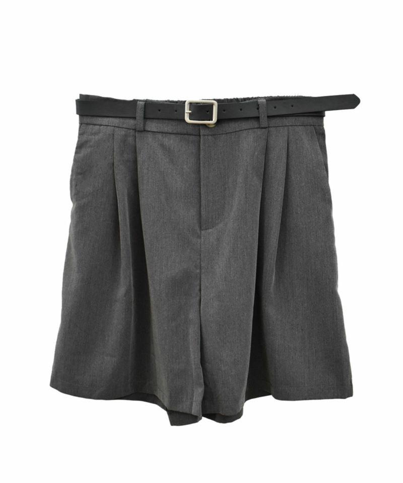 シンプルなデザインの、ベルト付きハーフパンツ。