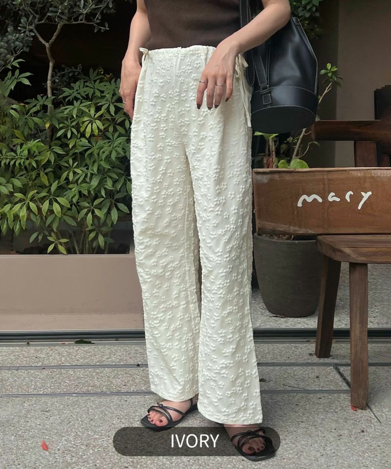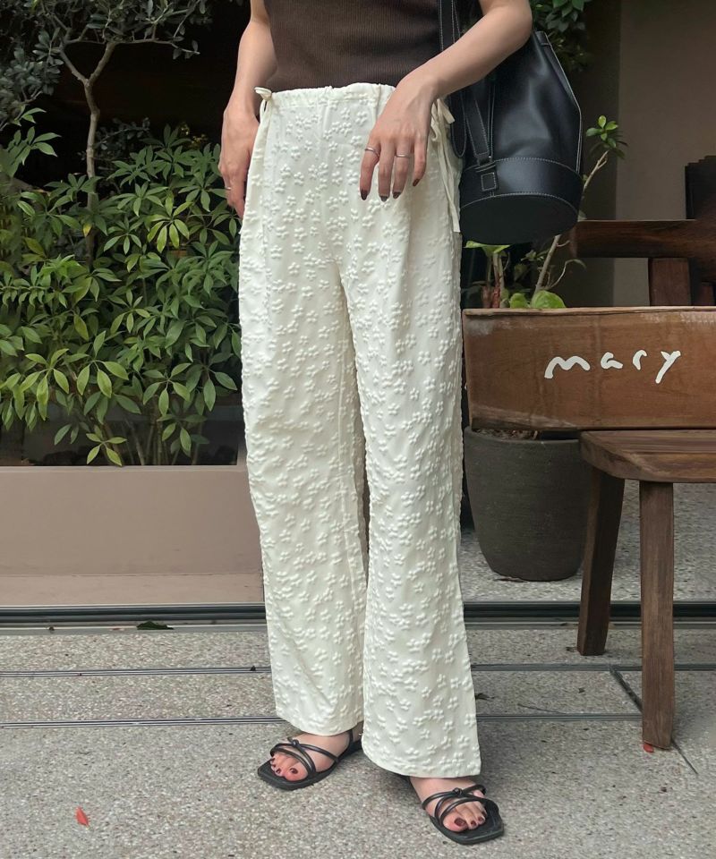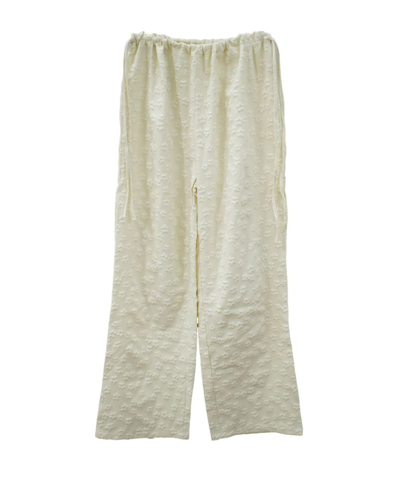 ぽこぽこと浮かび上がるようなフラワー柄の立体ジャガードを使用。