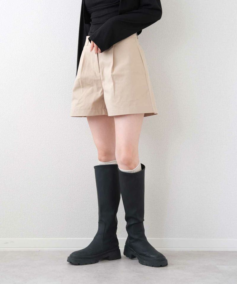 フロントに施されたタックが、足のラインをすっきりと見せてくれます。